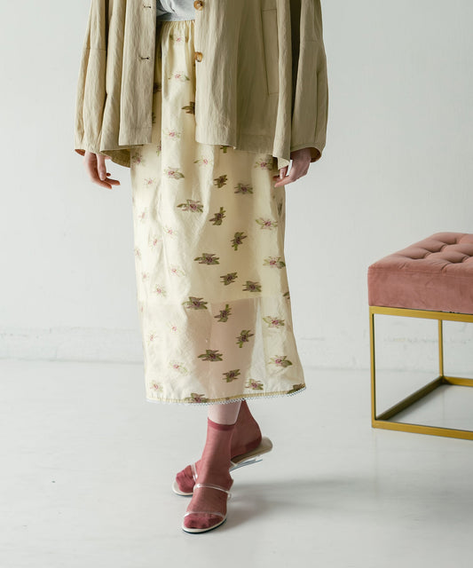 sheer flower skirt / WHT26HSK4031