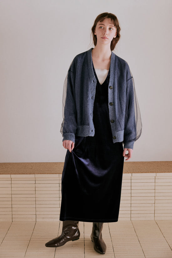 Knit: tulle layered knit cardigan ... [WHT25FKN4035]