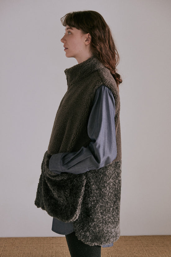 Vest: eco fur combination vest ... [WHT25FJK4045]