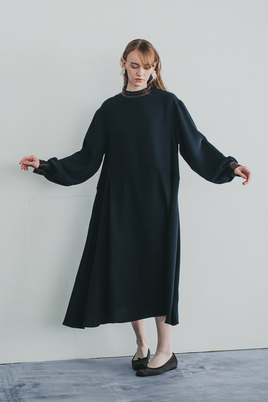 Dress: stand frill collar a line dress ... [WHT25FOP4073]