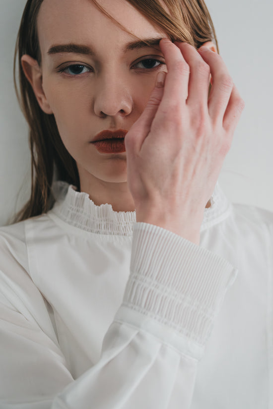 Blouse: jacquard volume blouse ... [WHT24FBL4053]