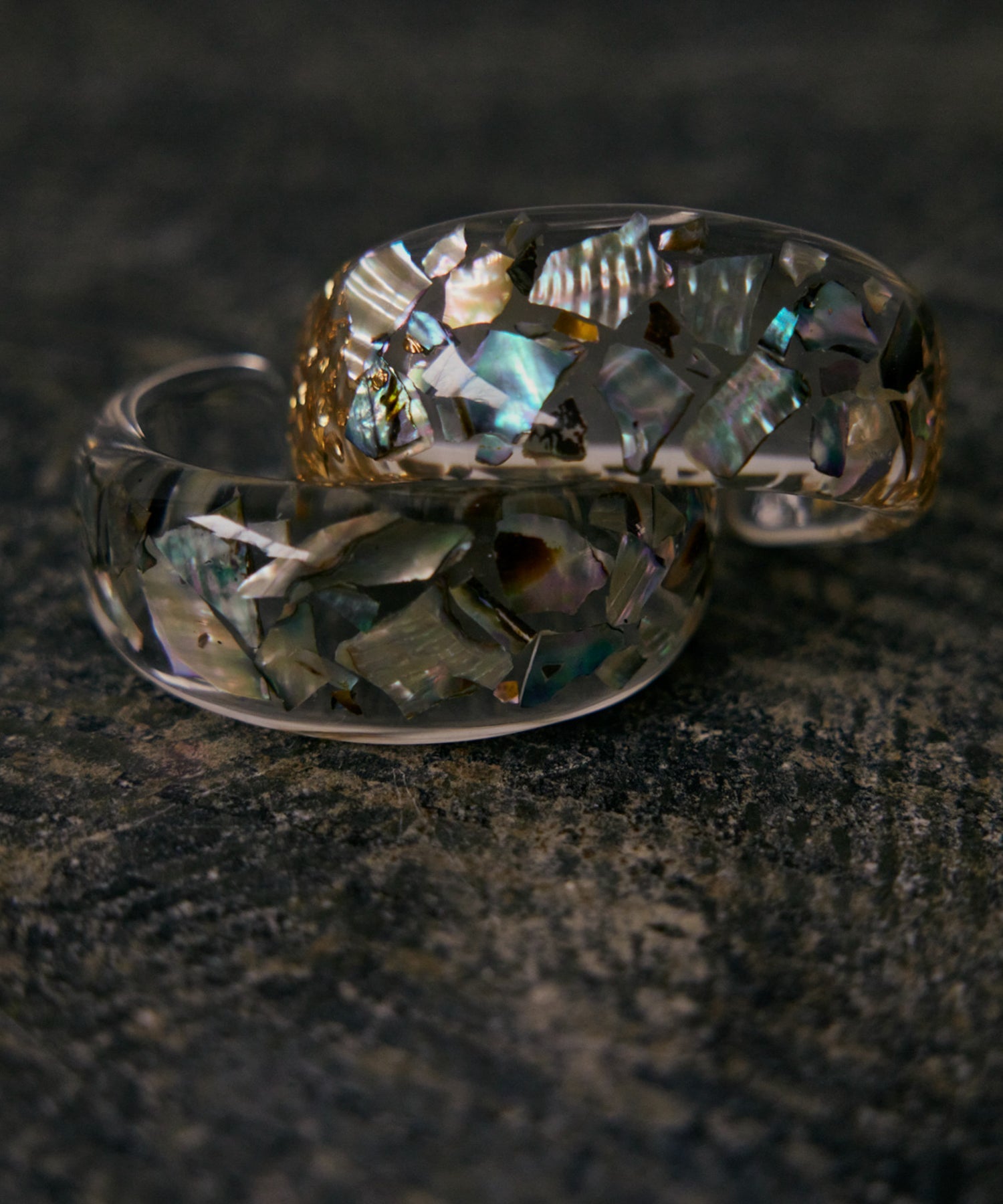 ・海の中で時間が止まっているような透明感のあるバングルをイメージしています。