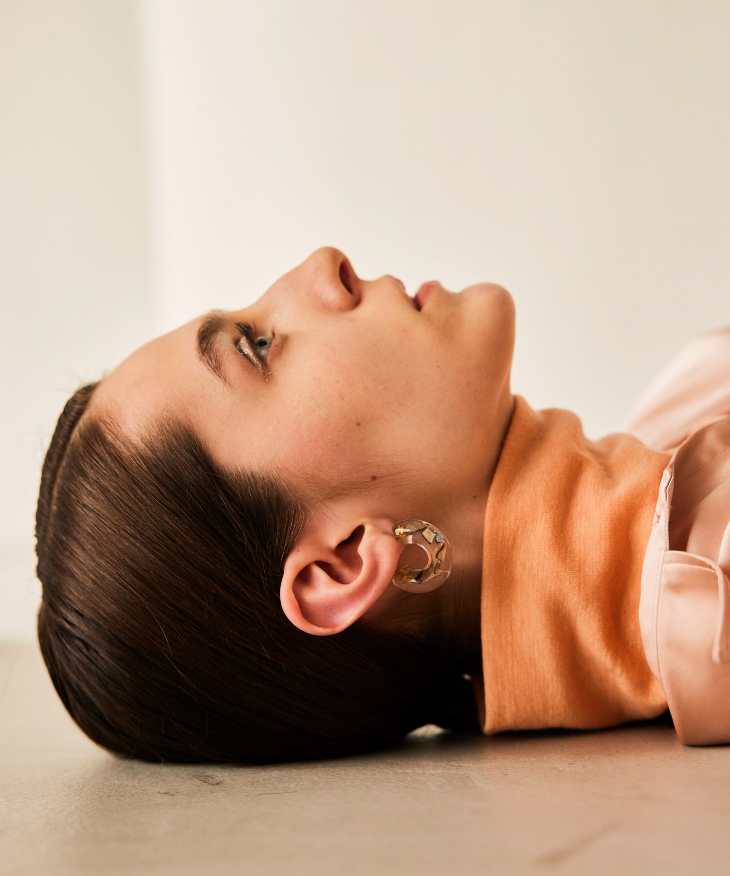 ・コンセプトのエンをイメージし、丸みと厚みのある円形のピアスに仕上げました。