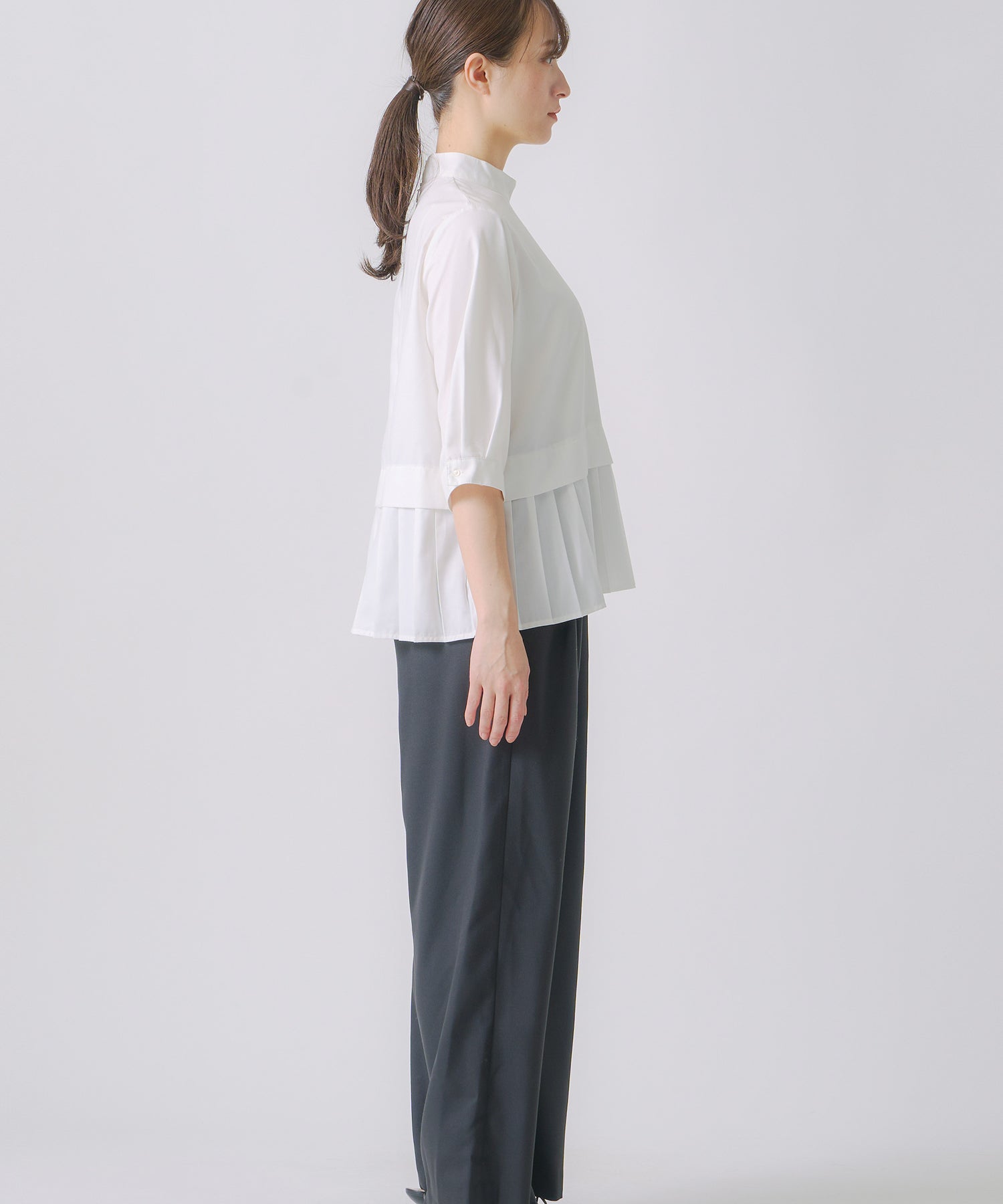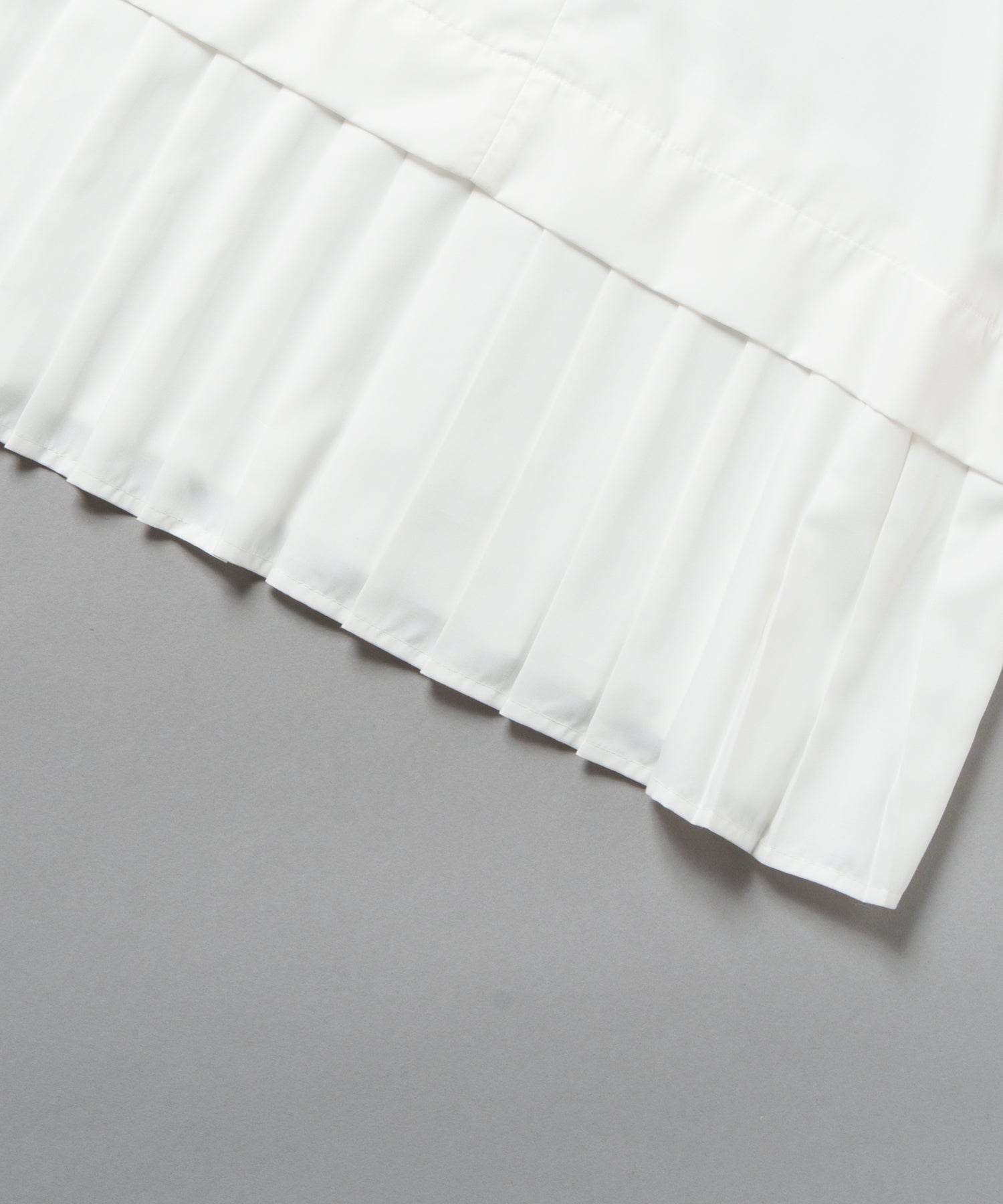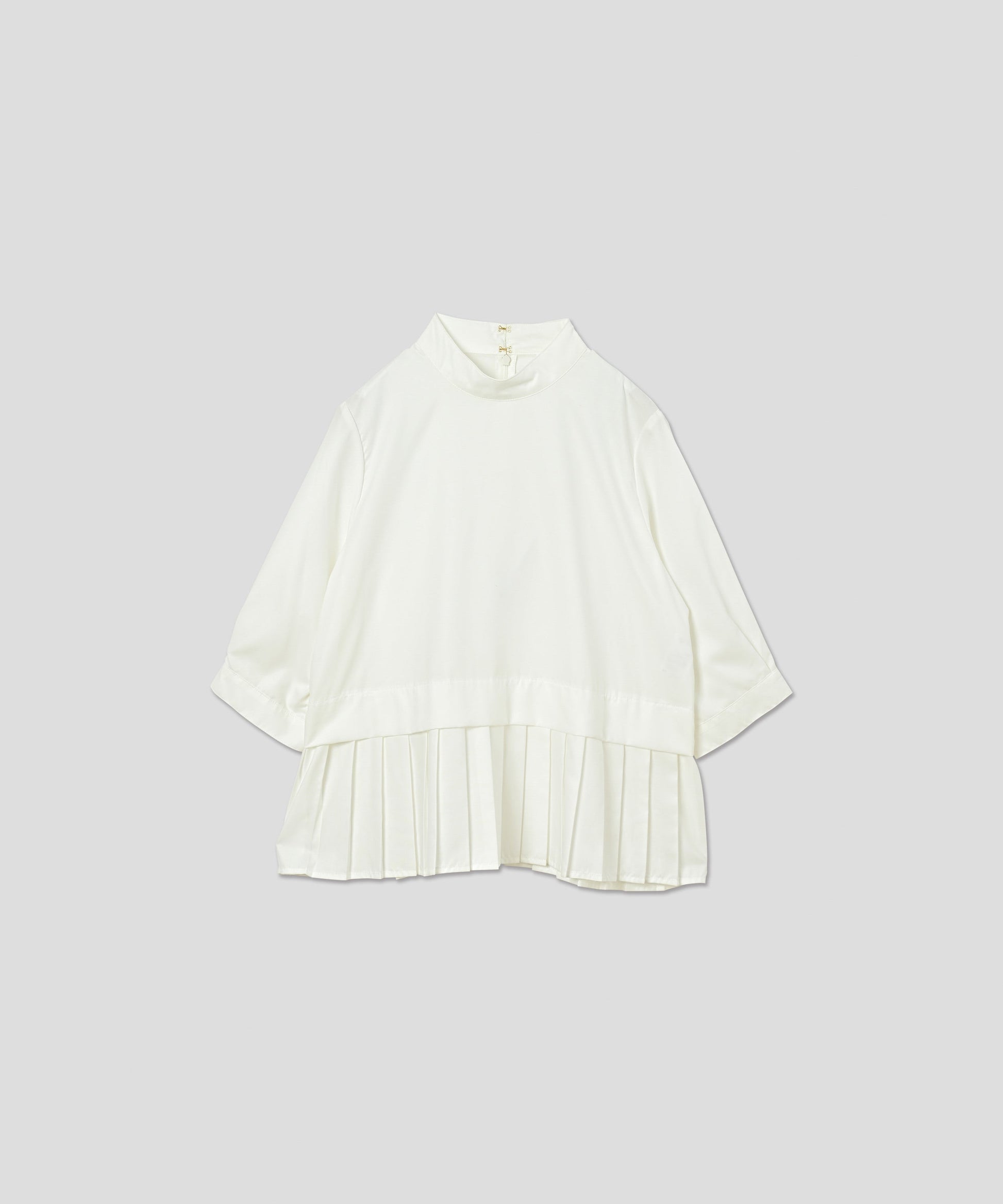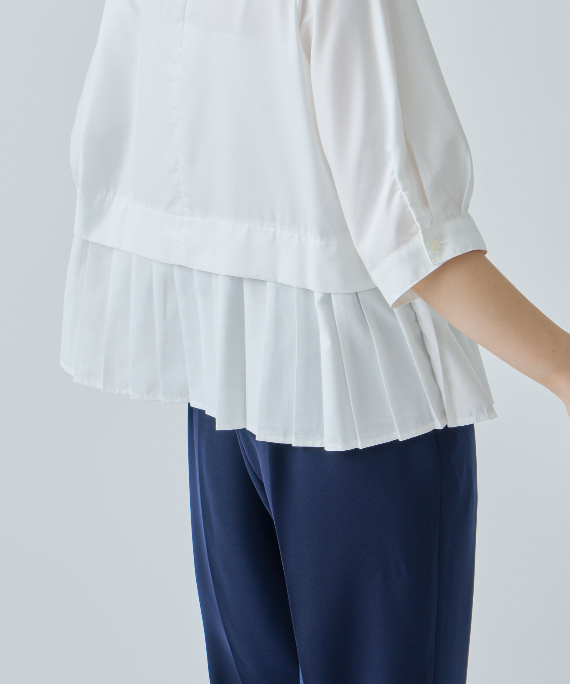 定番の裾のプリーツが特徴的なデザインブラウス。