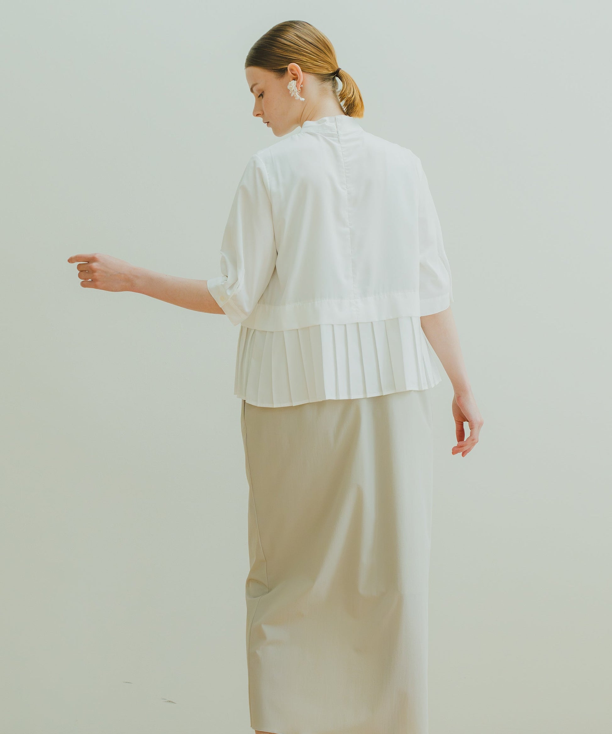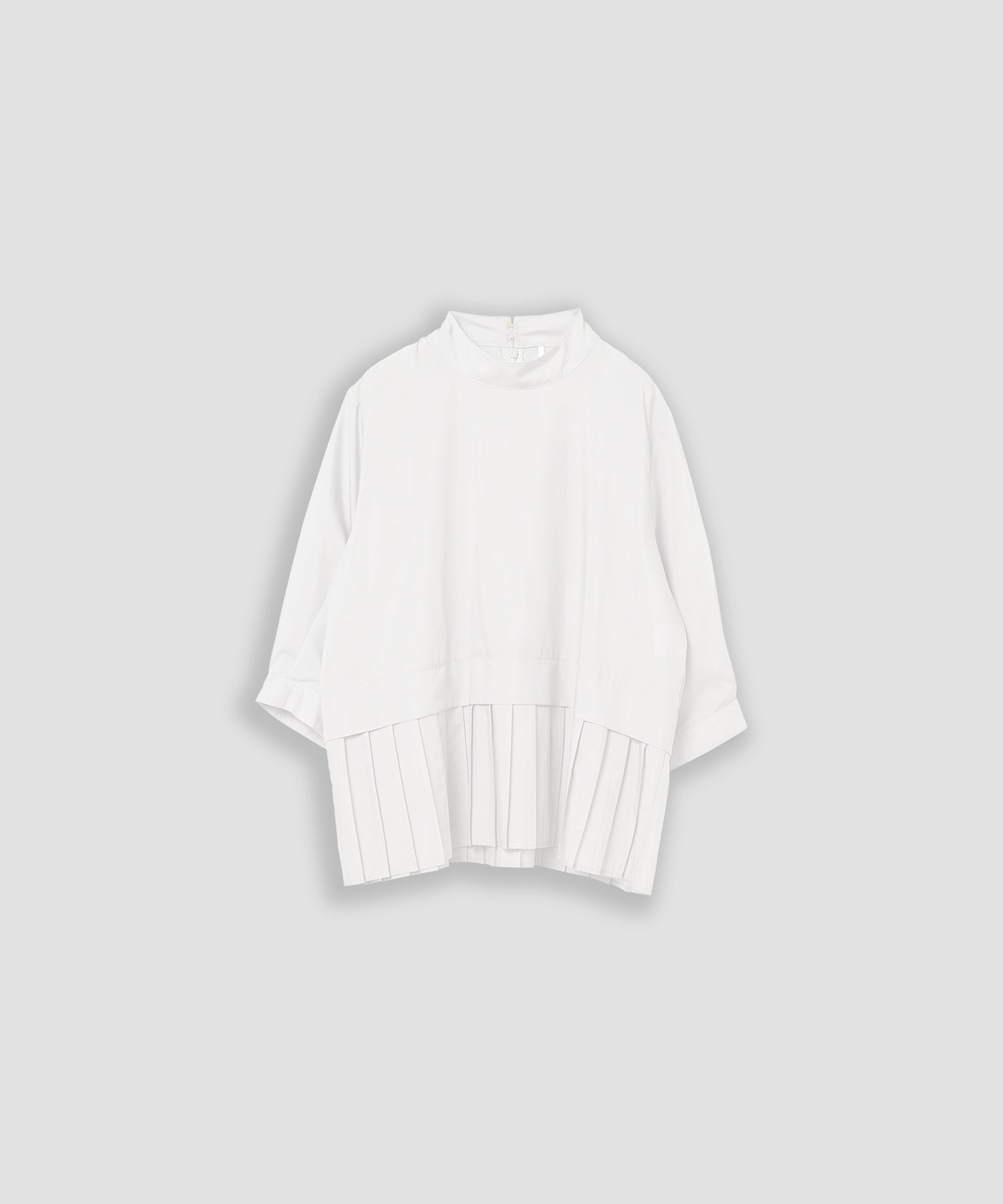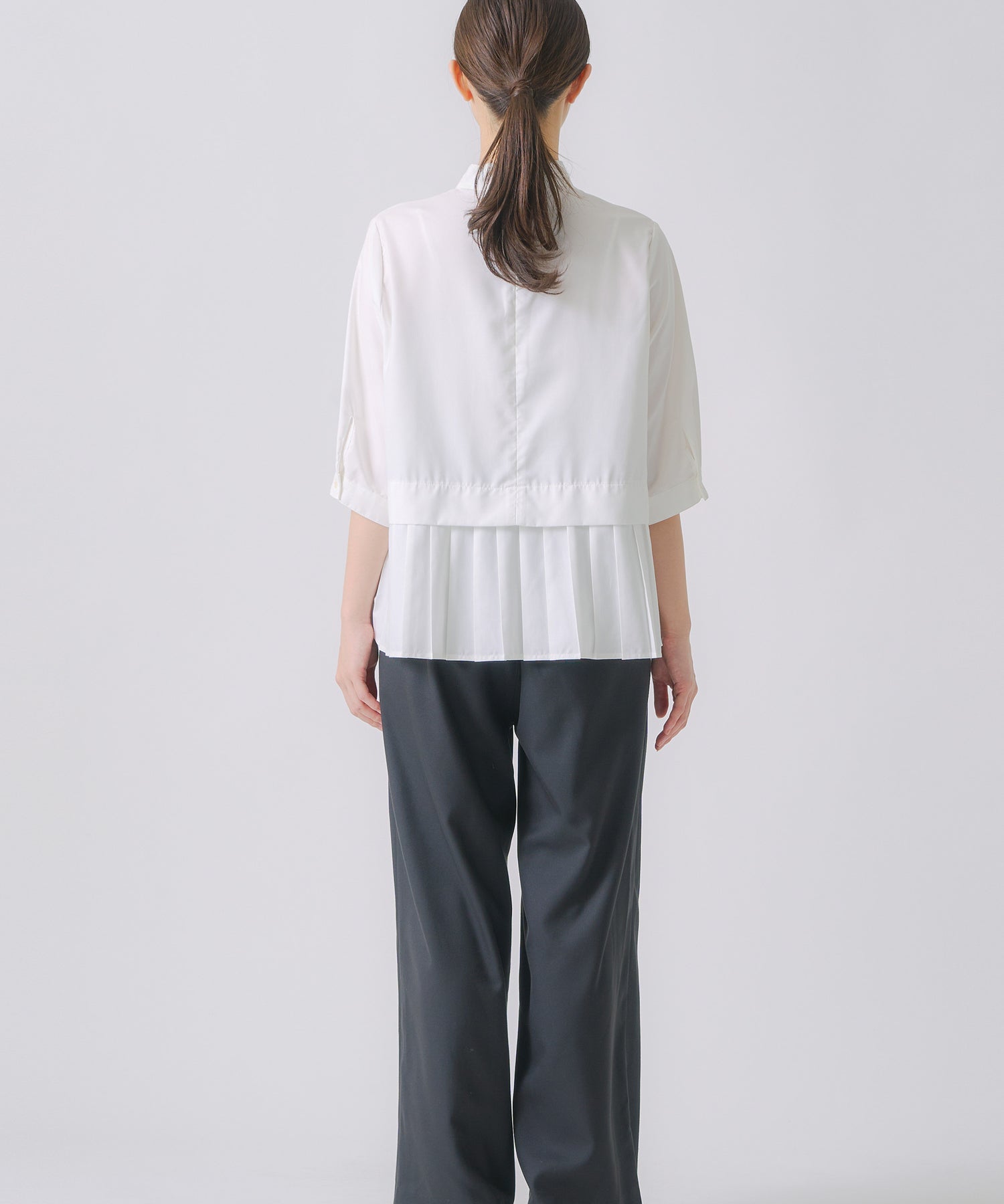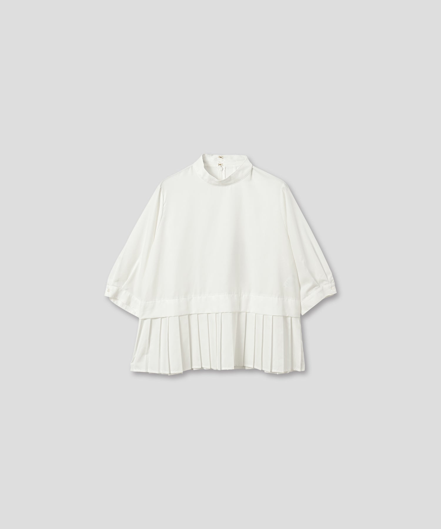 定番の裾のプリーツが特徴的なデザインブラウス。