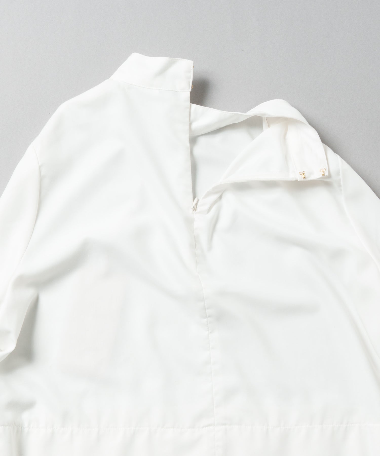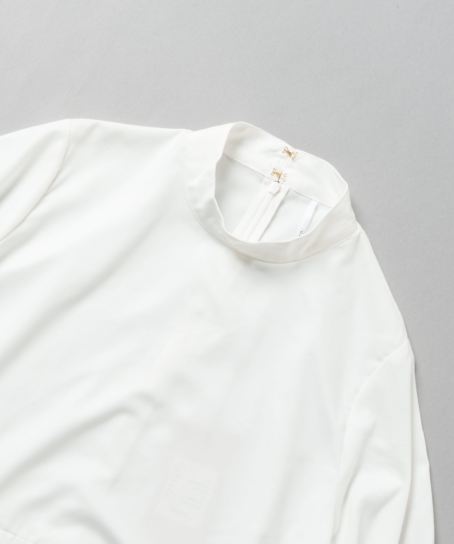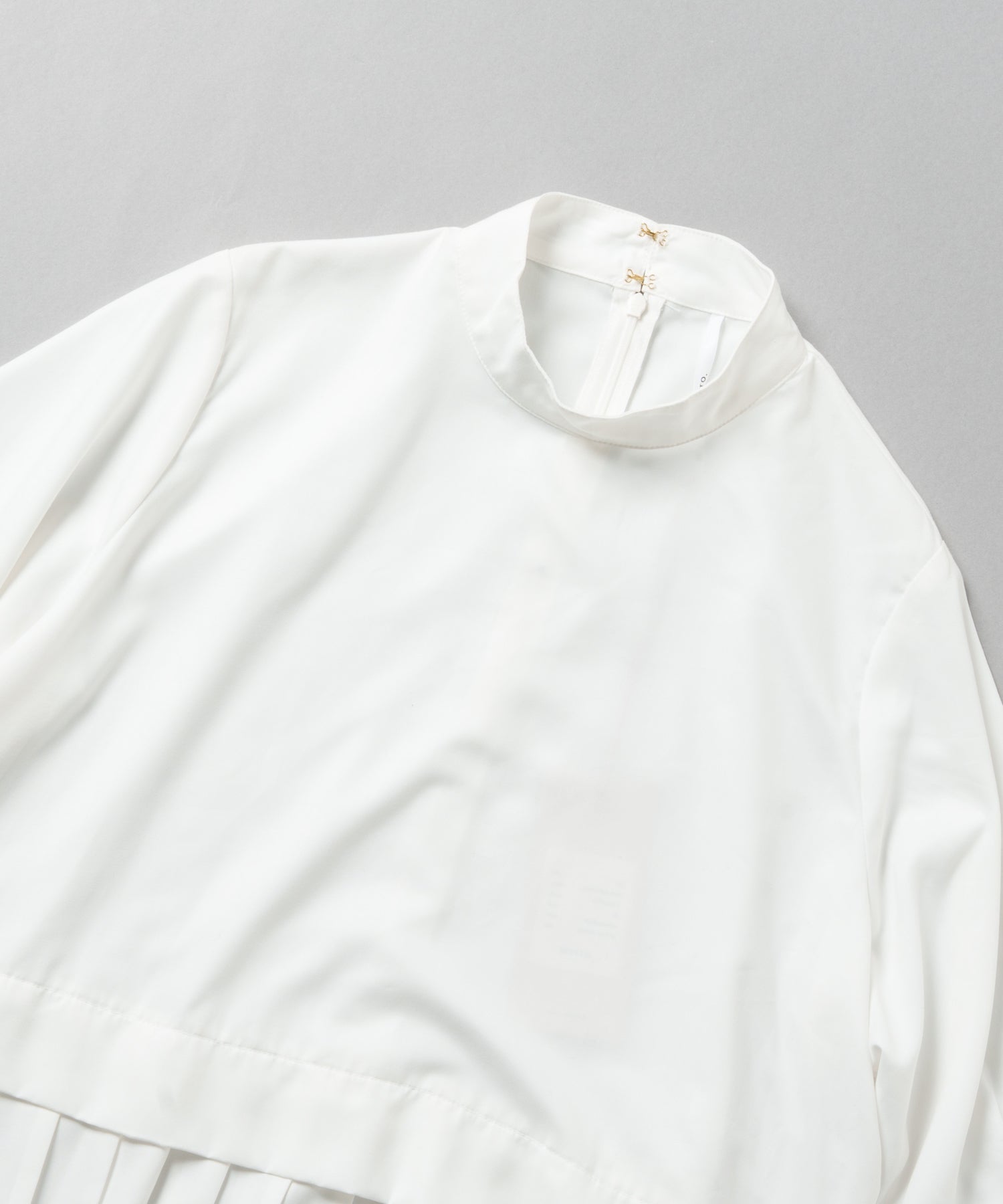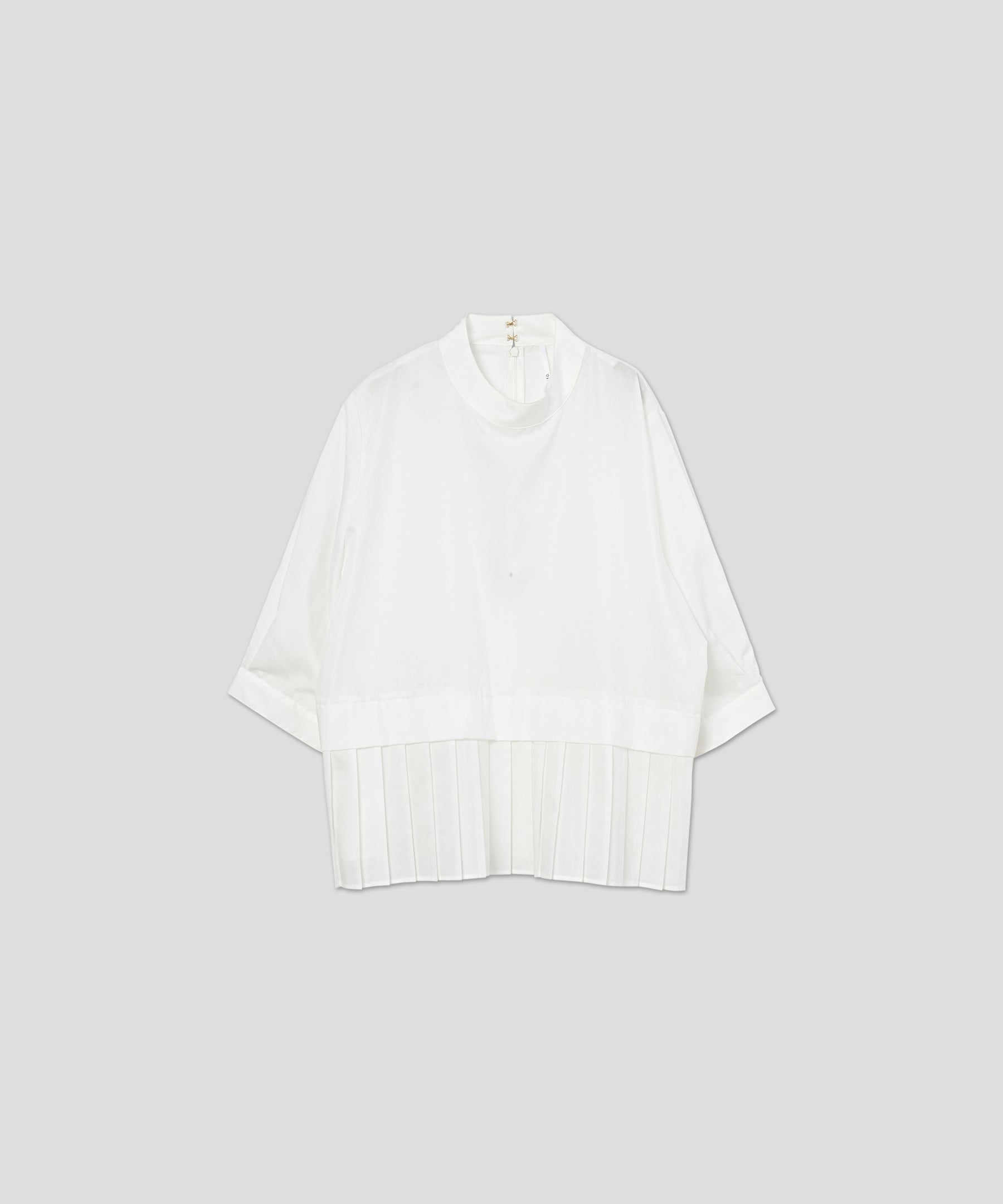 定番の裾のプリーツが特徴的なデザインブラウス。