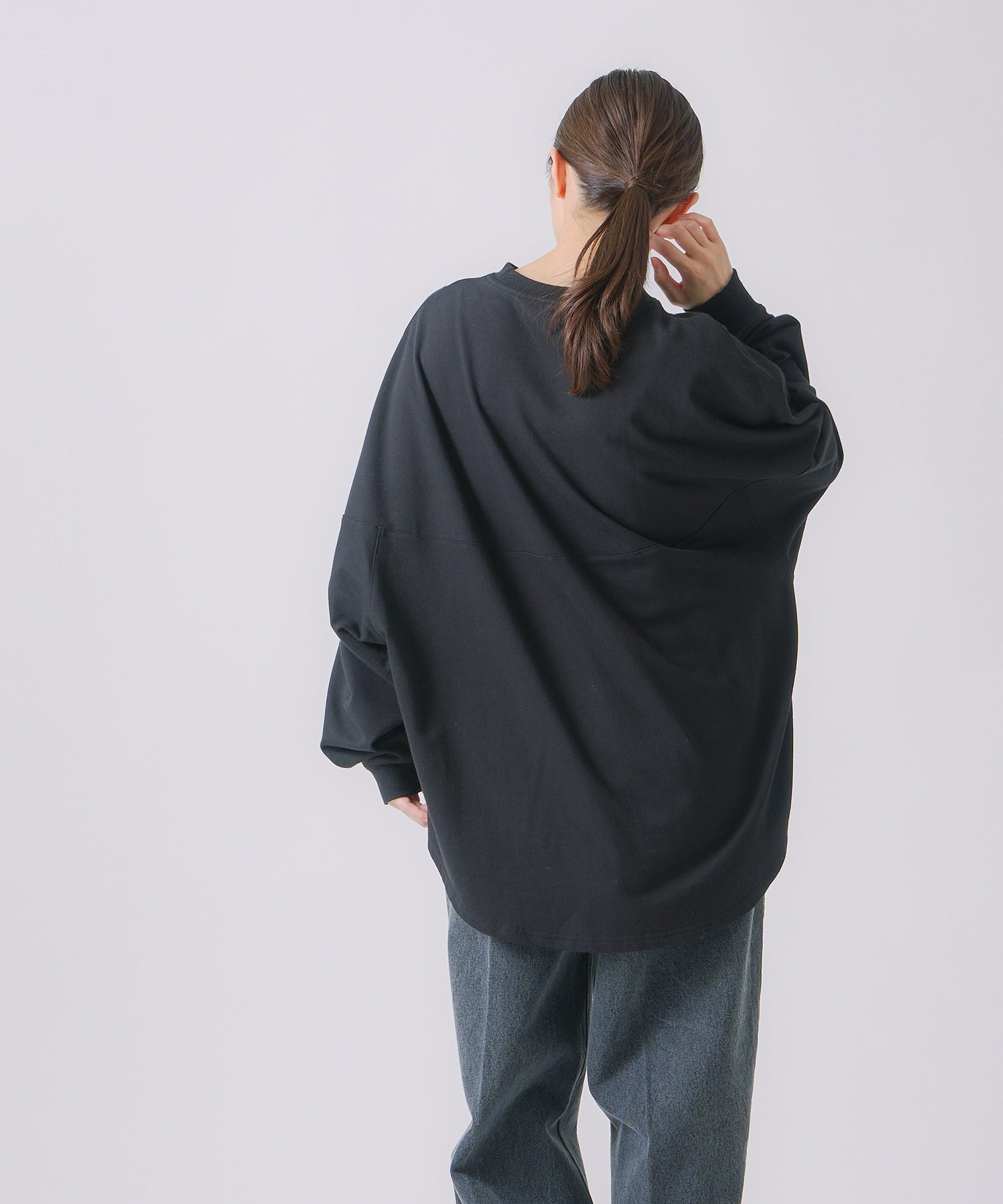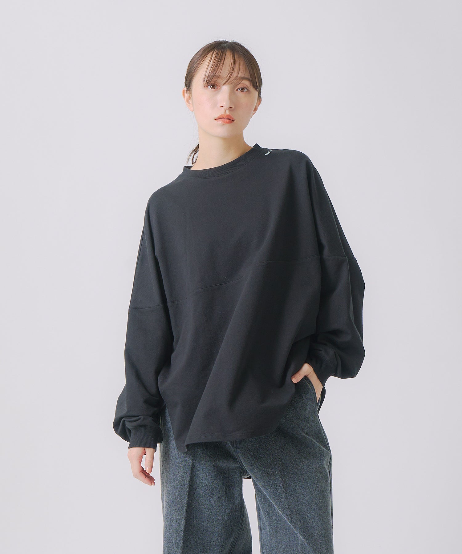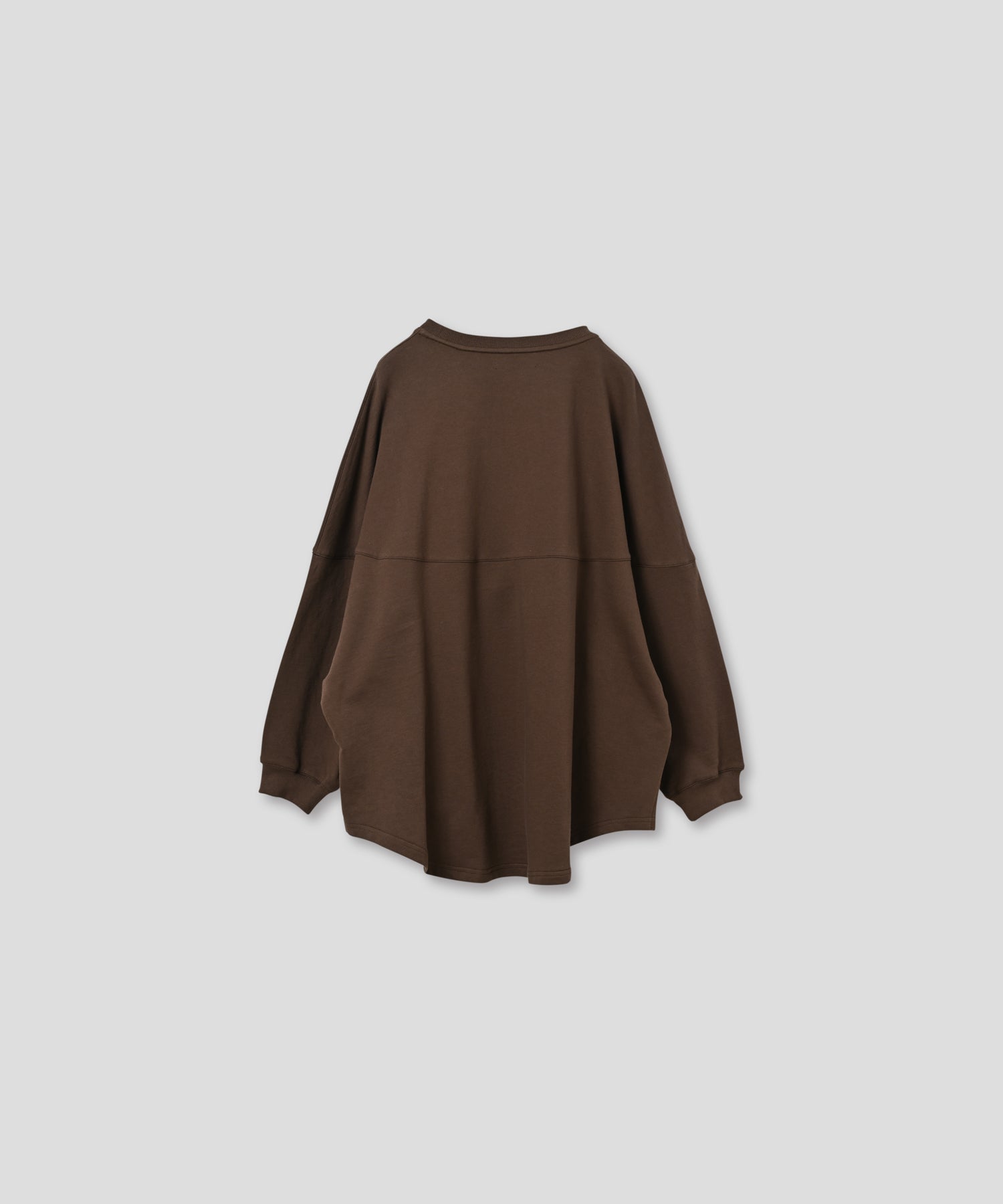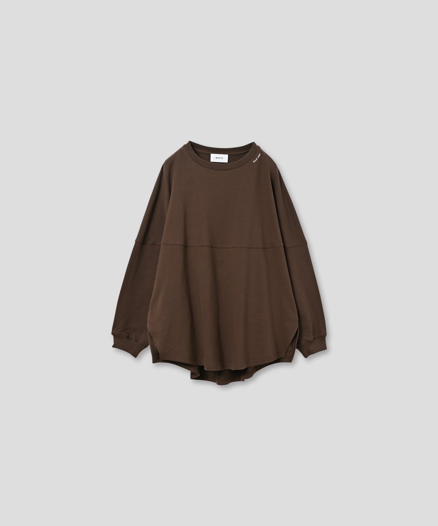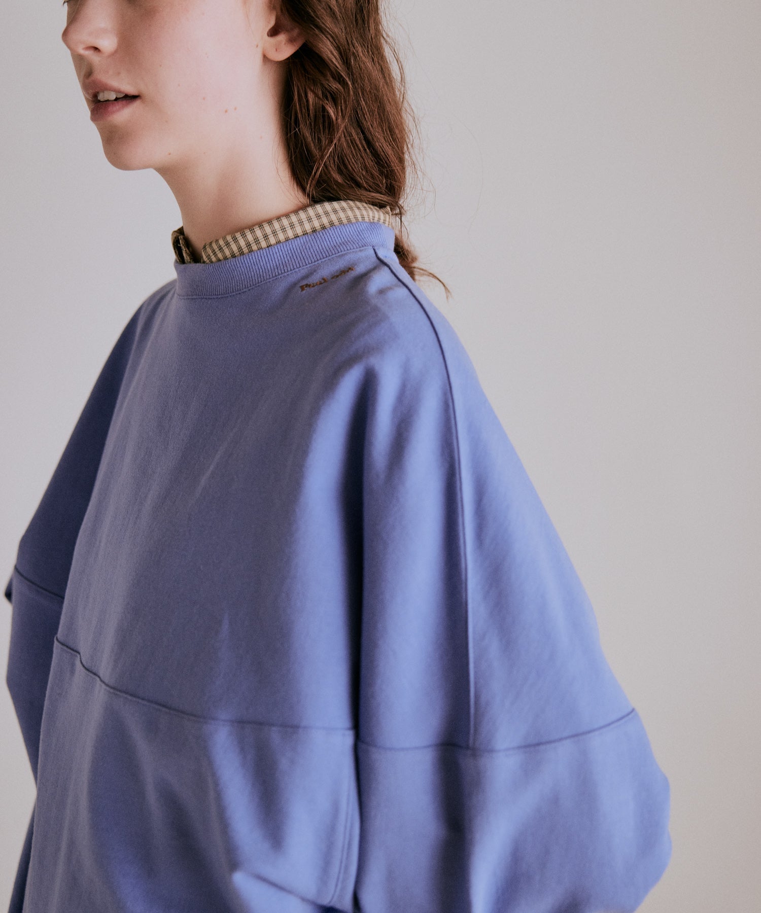 肩から大きくカーブを描いた切り替えが特徴的なスウェットです。