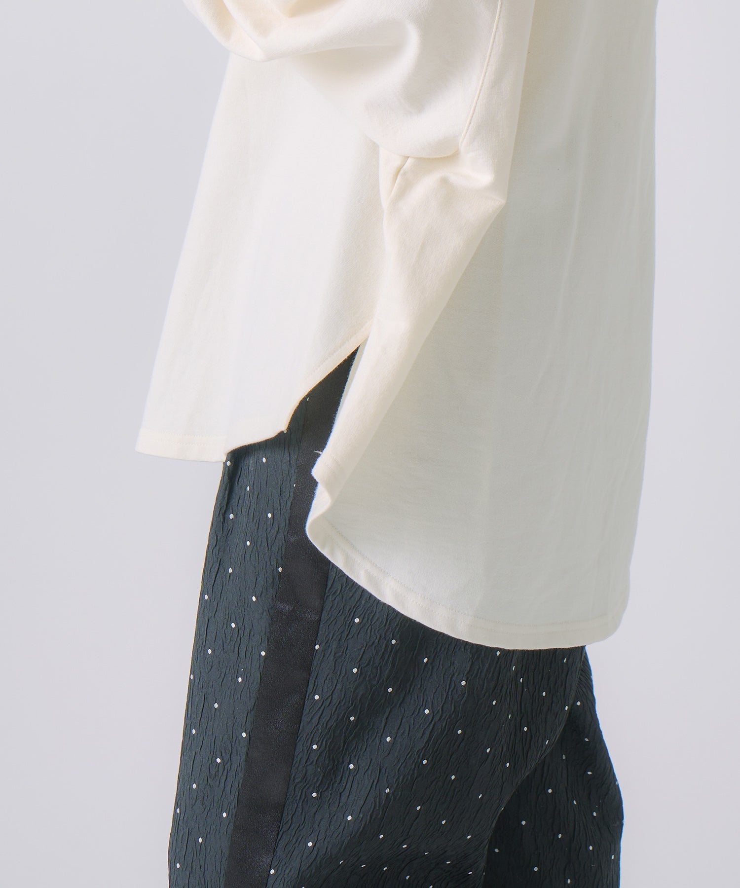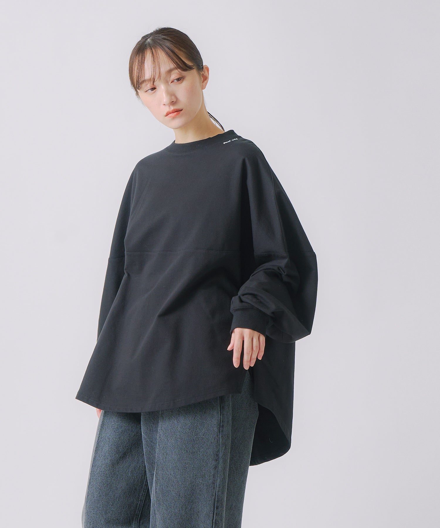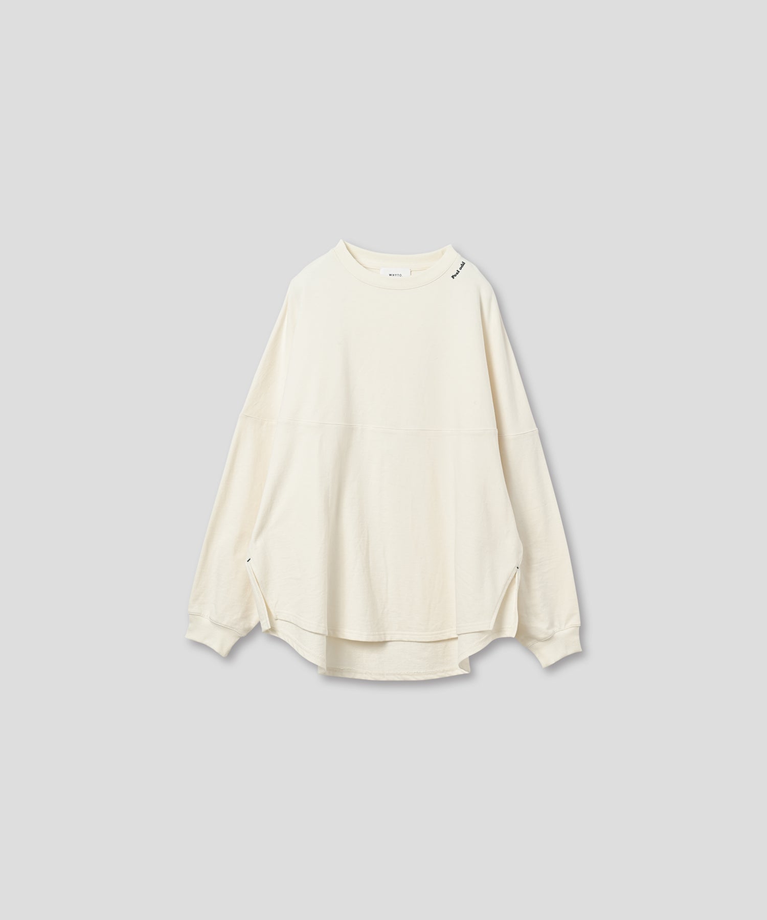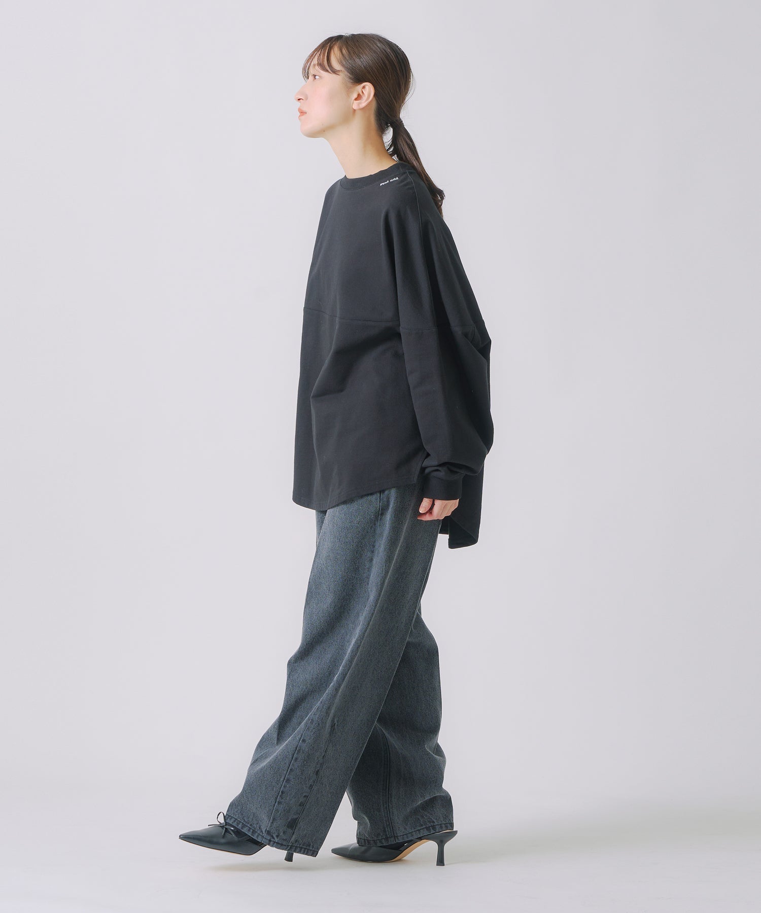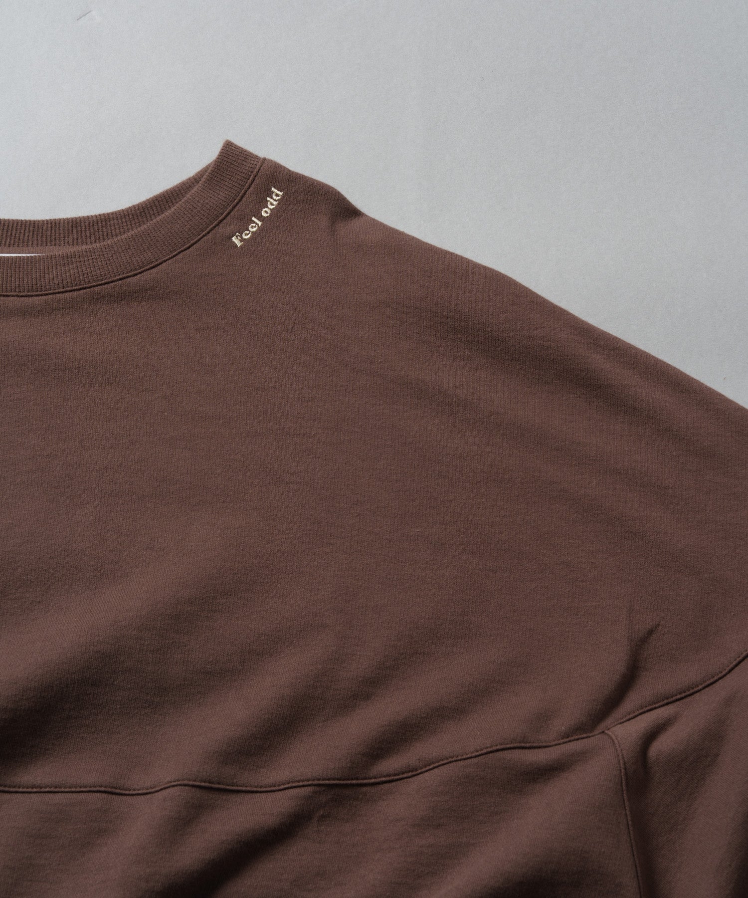 肩から大きくカーブを描いた切り替えが特徴的なスウェットです。