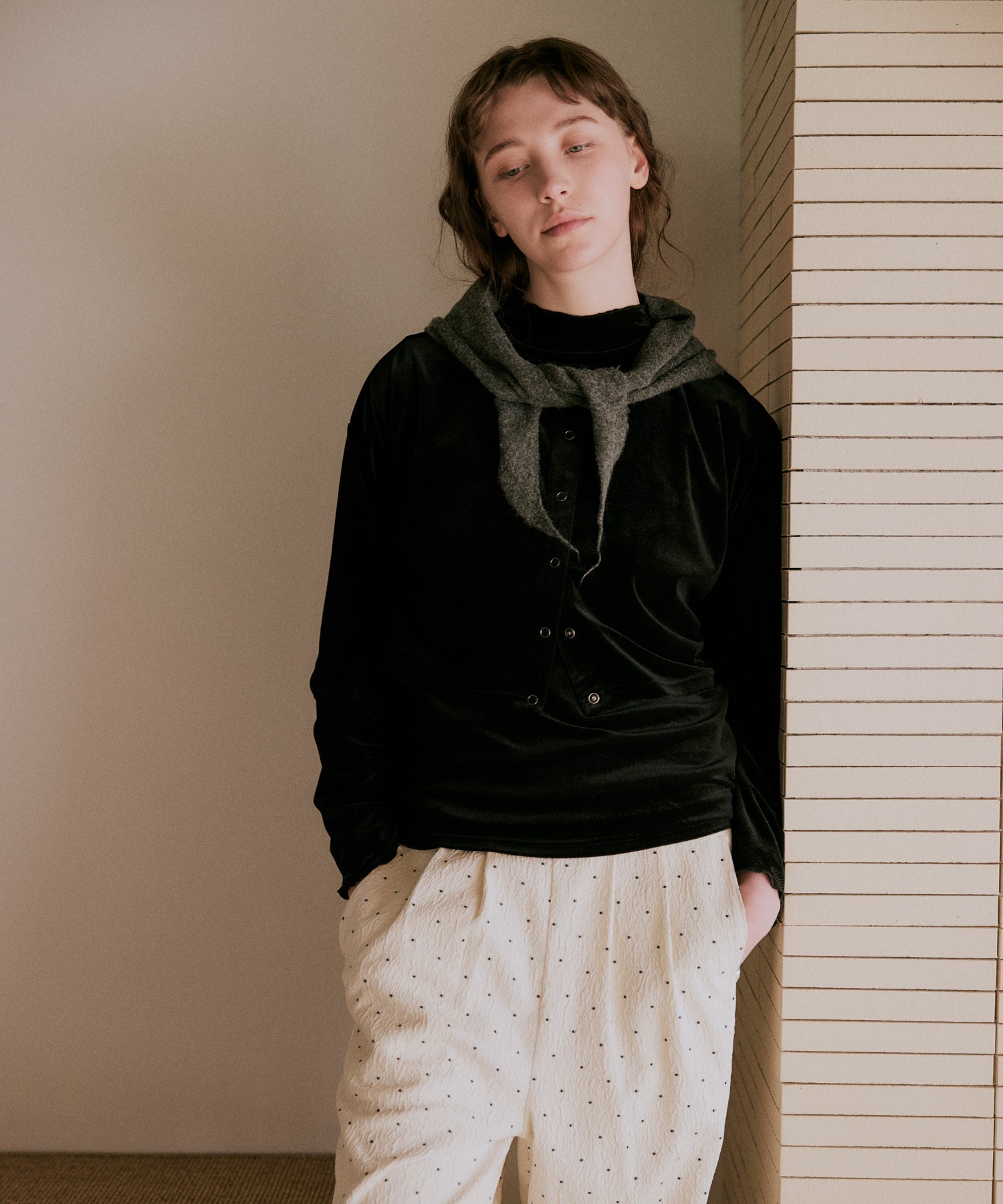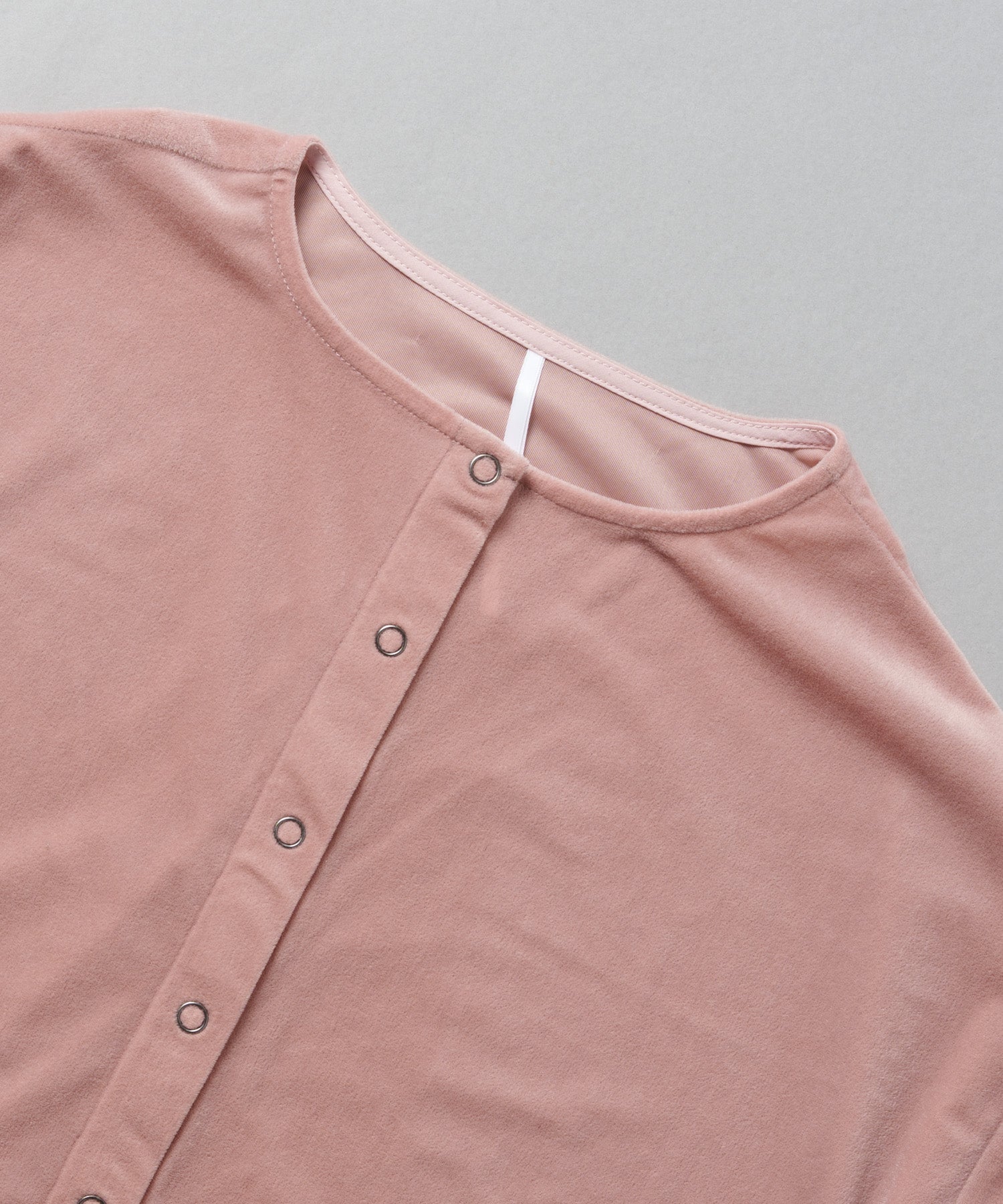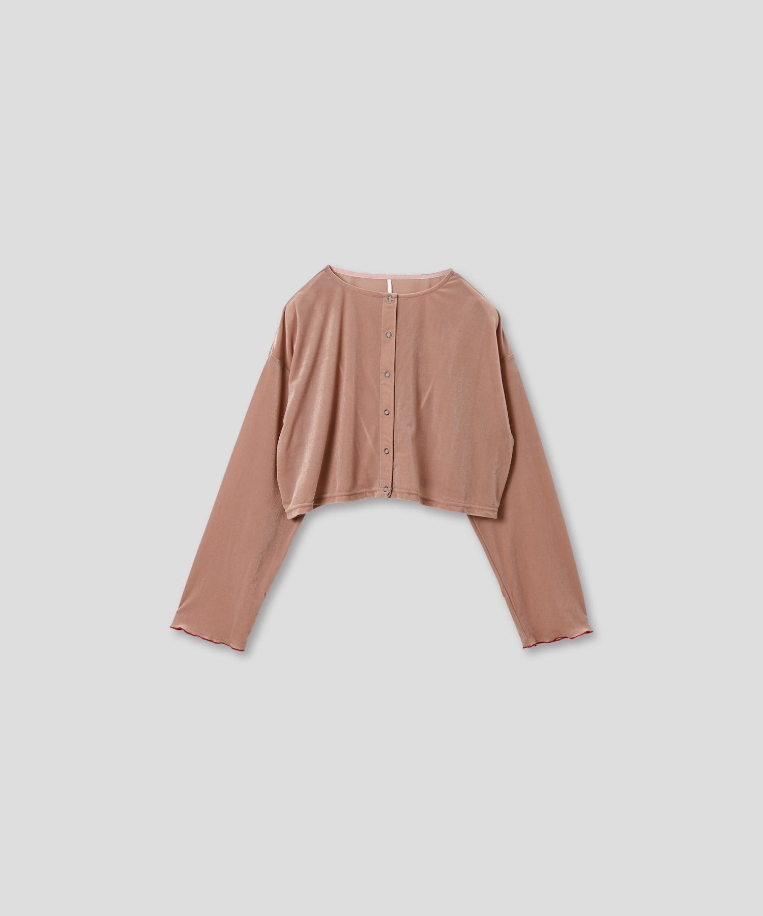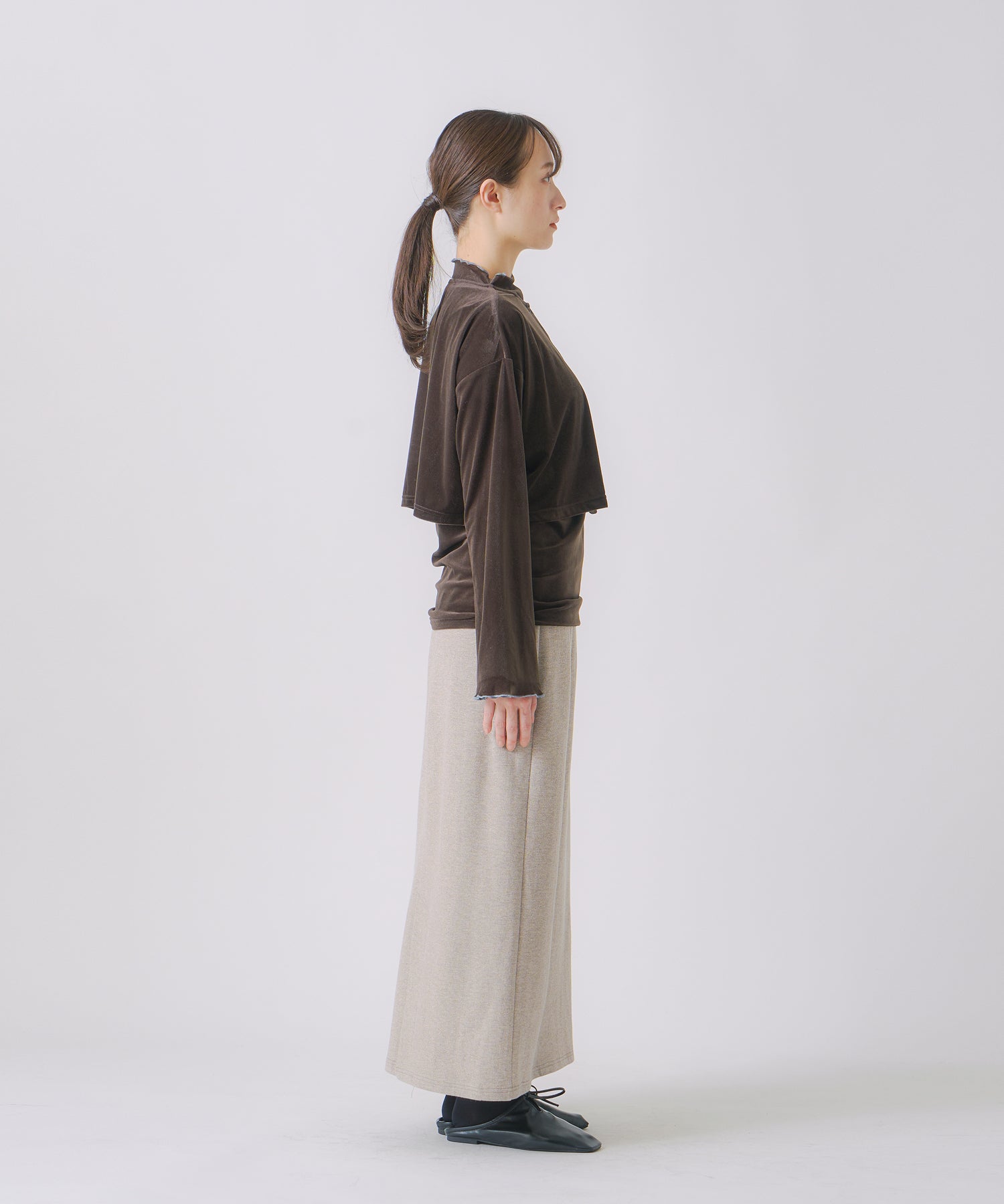 同素材展開のベロアトップスとのレイヤードはもちろん、ワンピースやサロペットなどお手持ちのアイテムとのスタイリング可能です。
