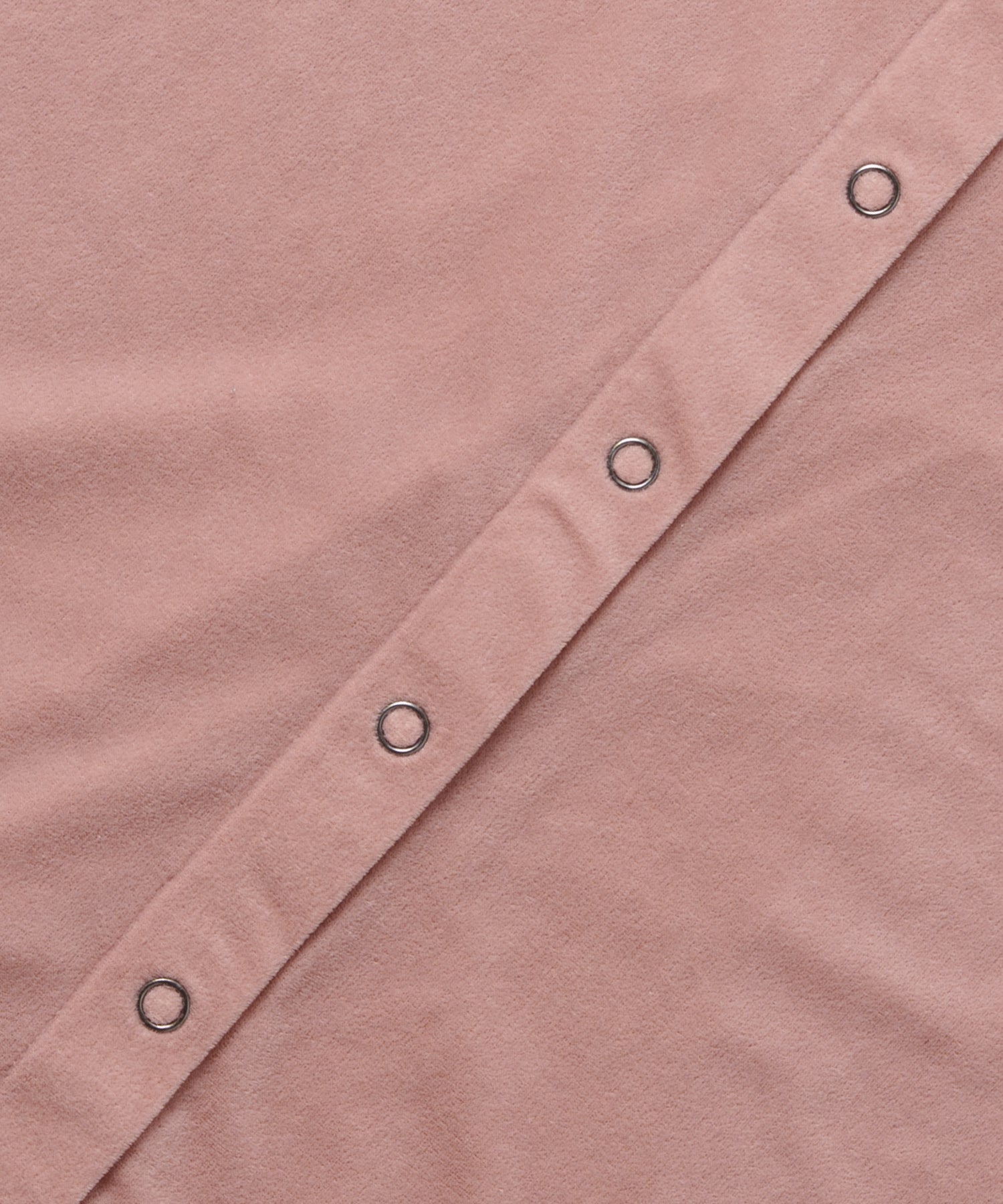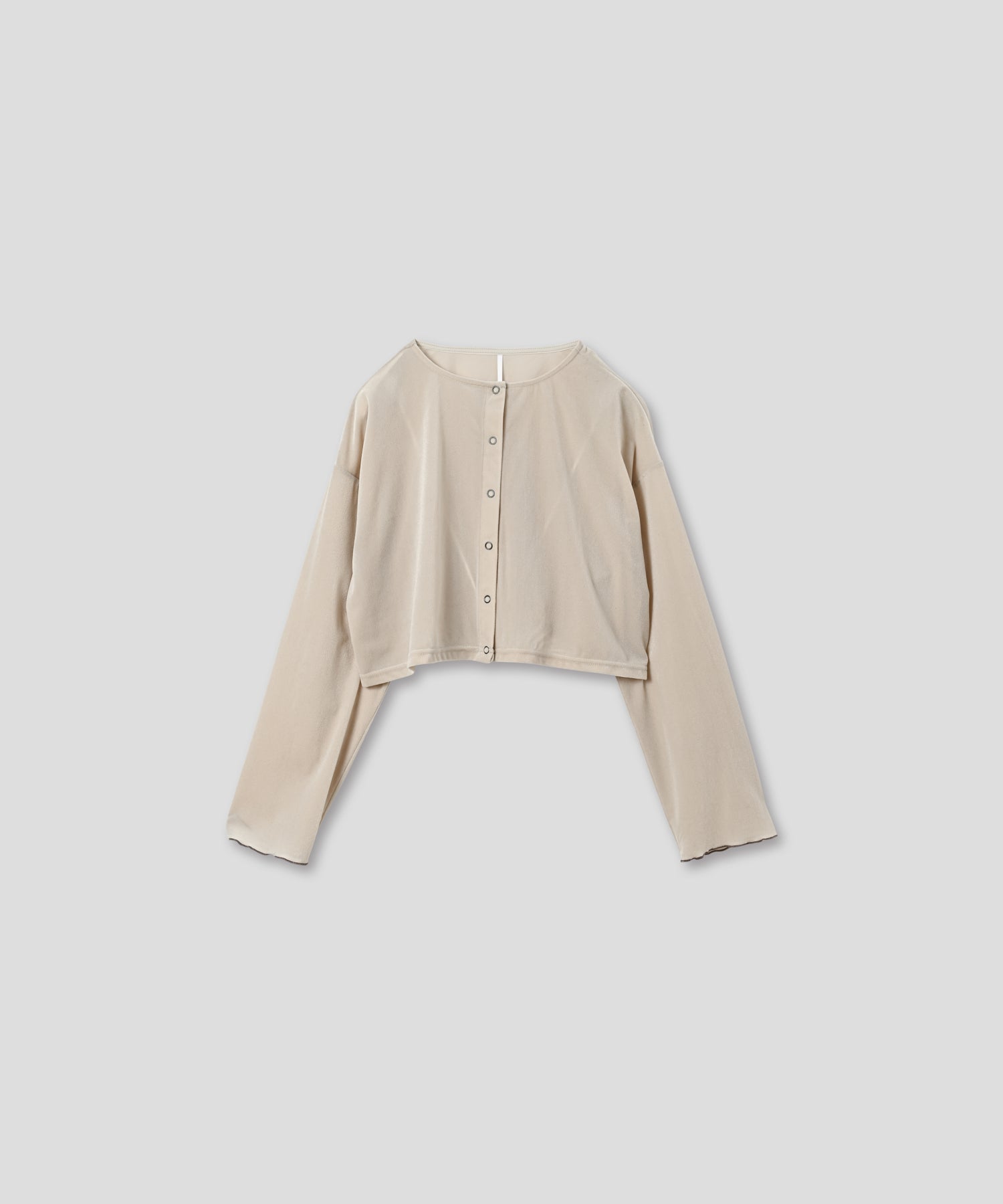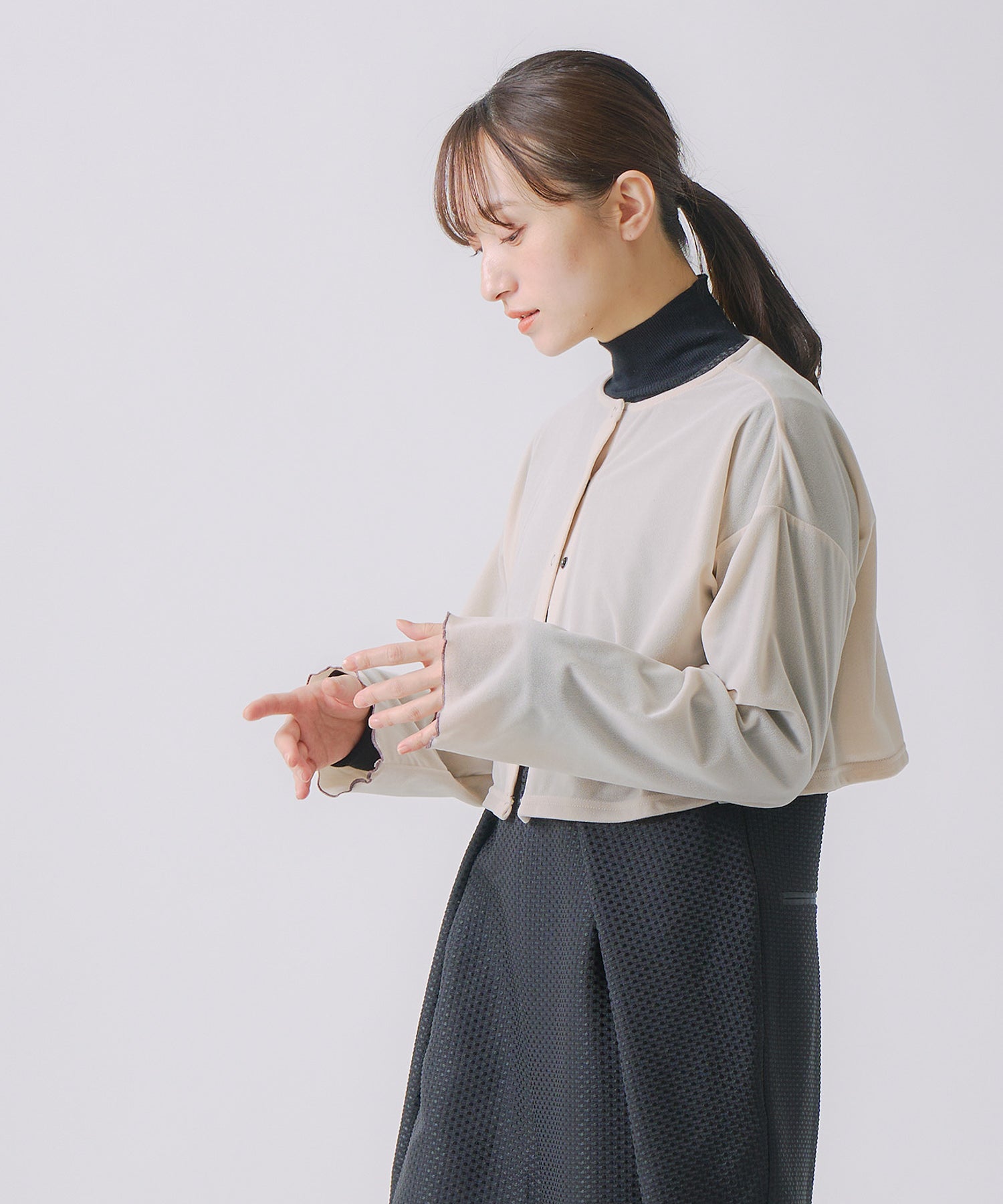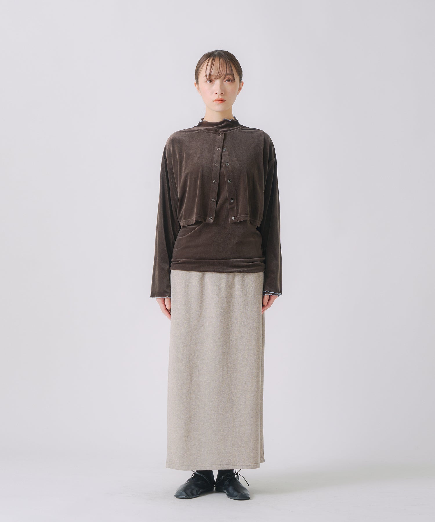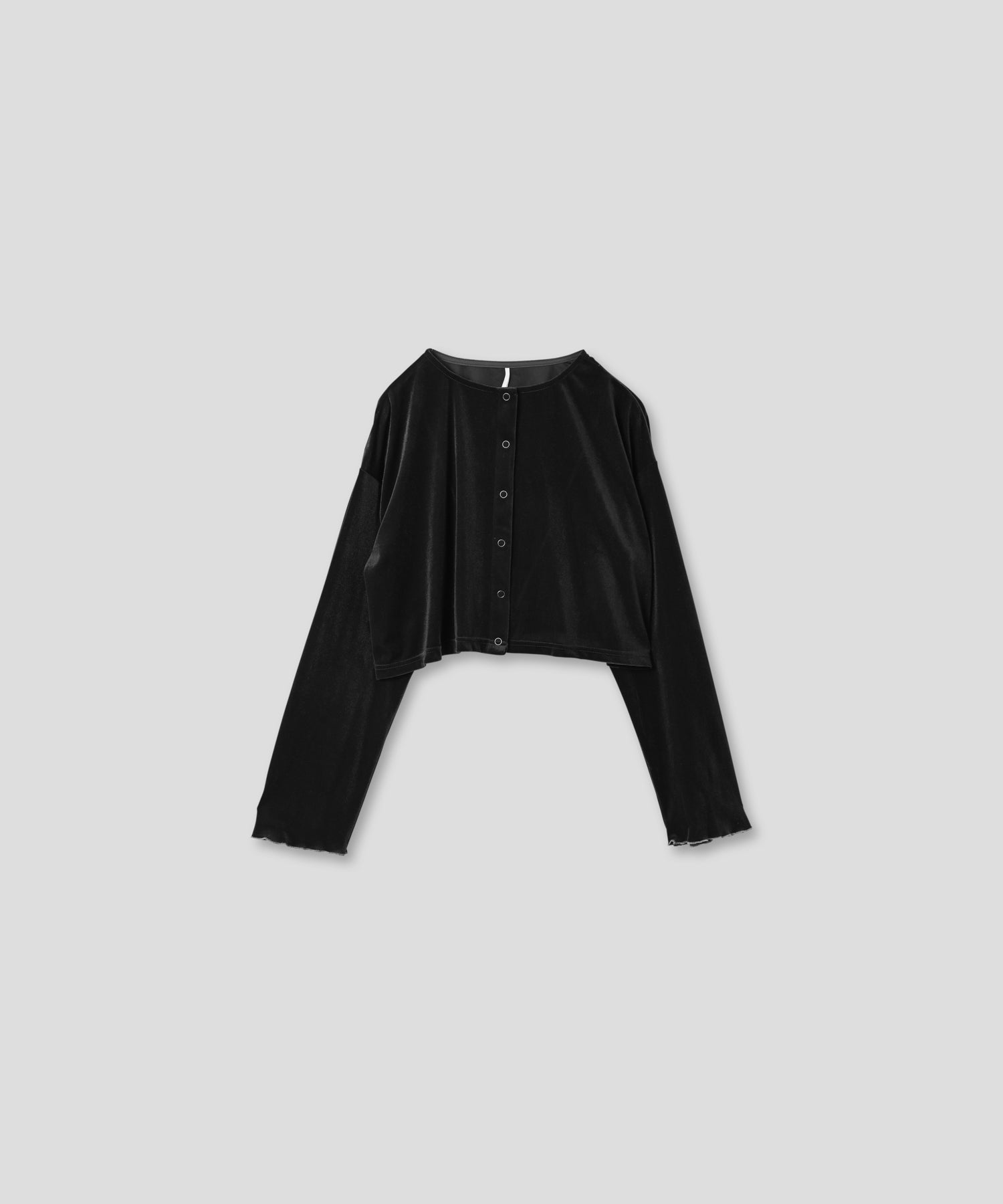 同素材展開のベロアトップスとのレイヤードはもちろん、ワンピースやサロペットなどお手持ちのアイテムとのスタイリング可能です。