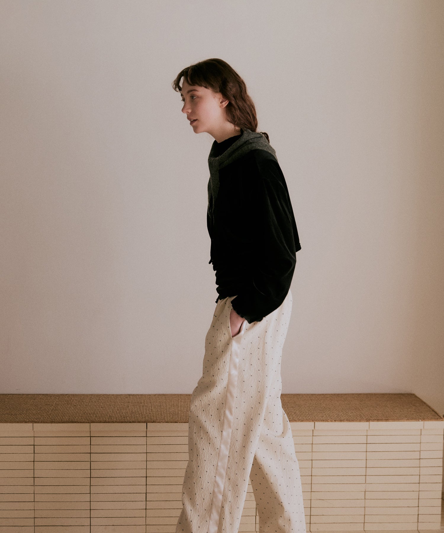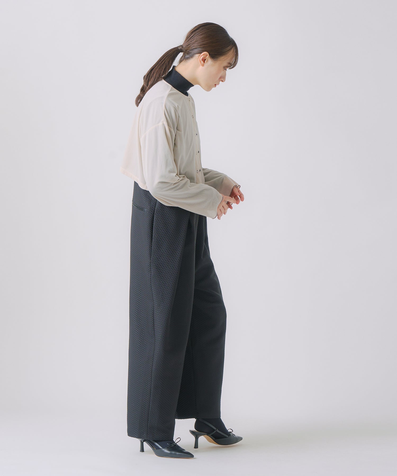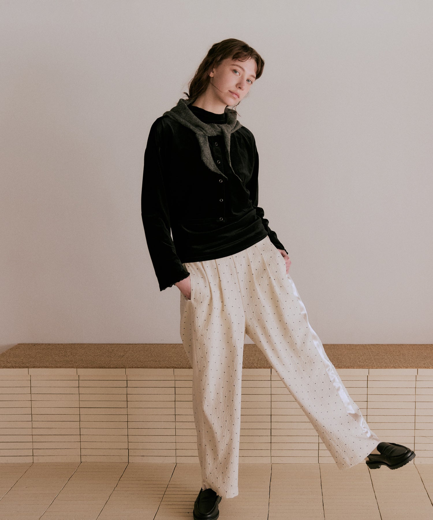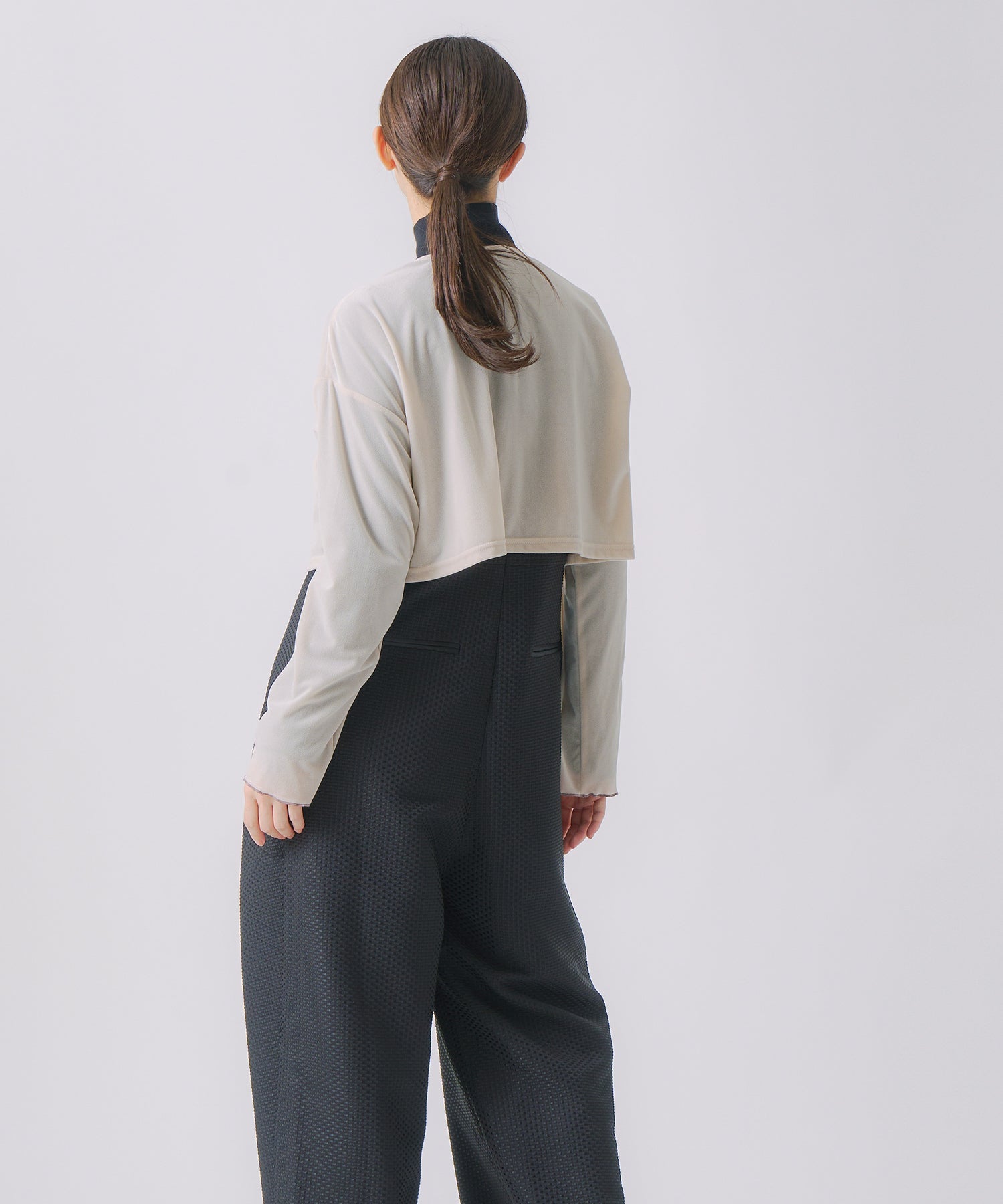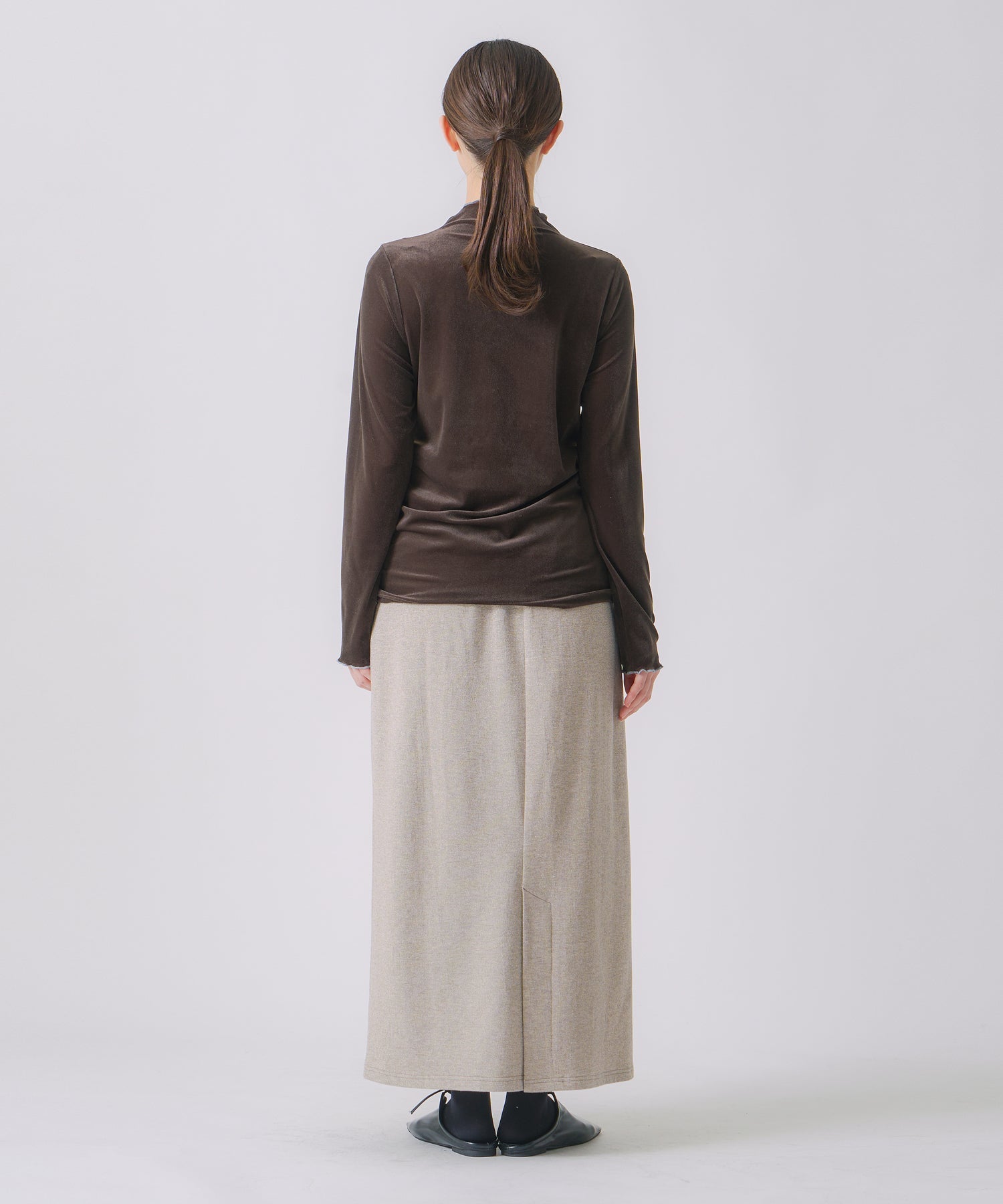 同素材展開のベロアトップスとのレイヤードはもちろん、ワンピースやサロペットなどお手持ちのアイテムとのスタイリング可能です。