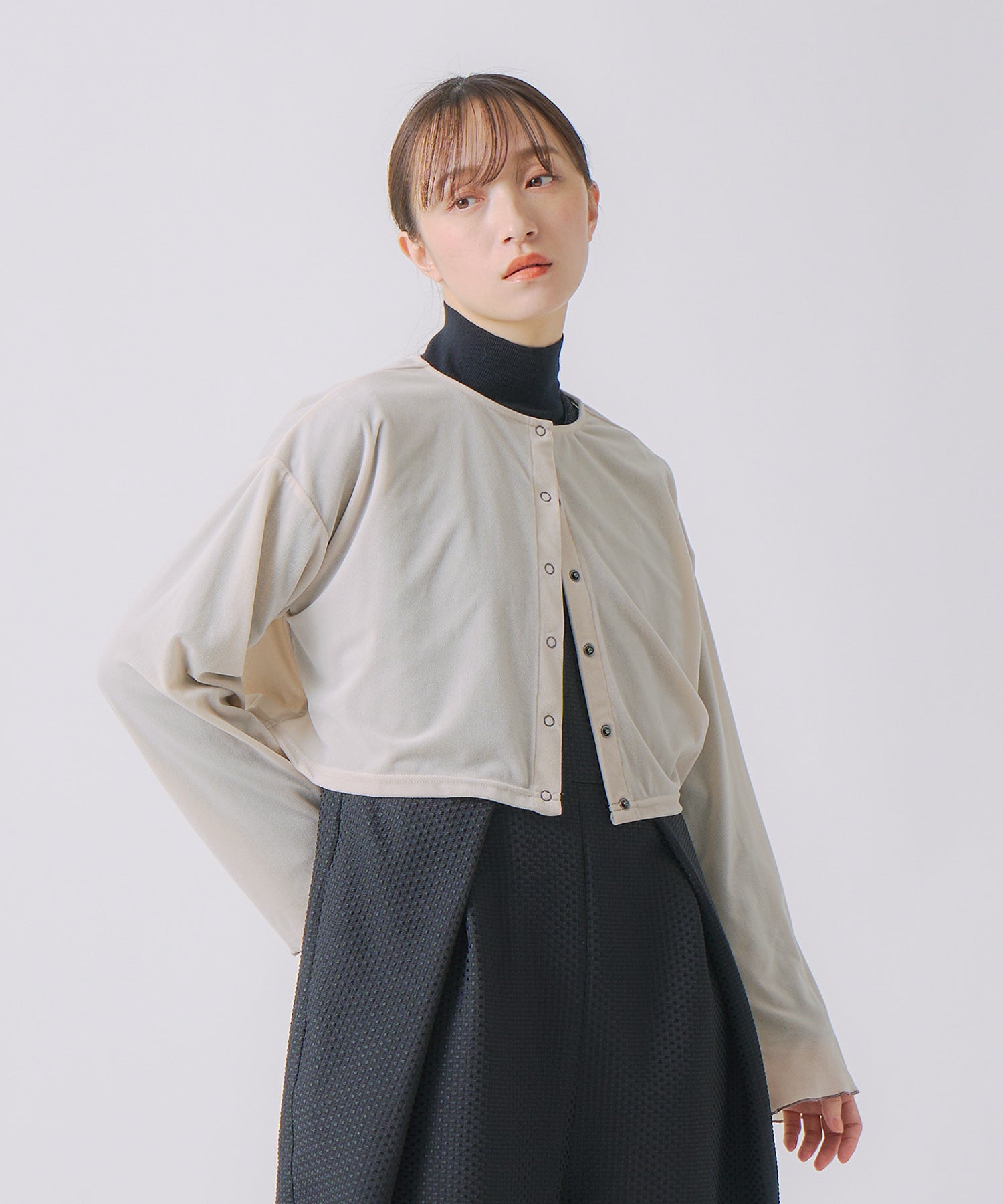ベロア素材にシアー感を取り入れ、秋冬でありながらも初秋から軽めに着用できるアイテム。