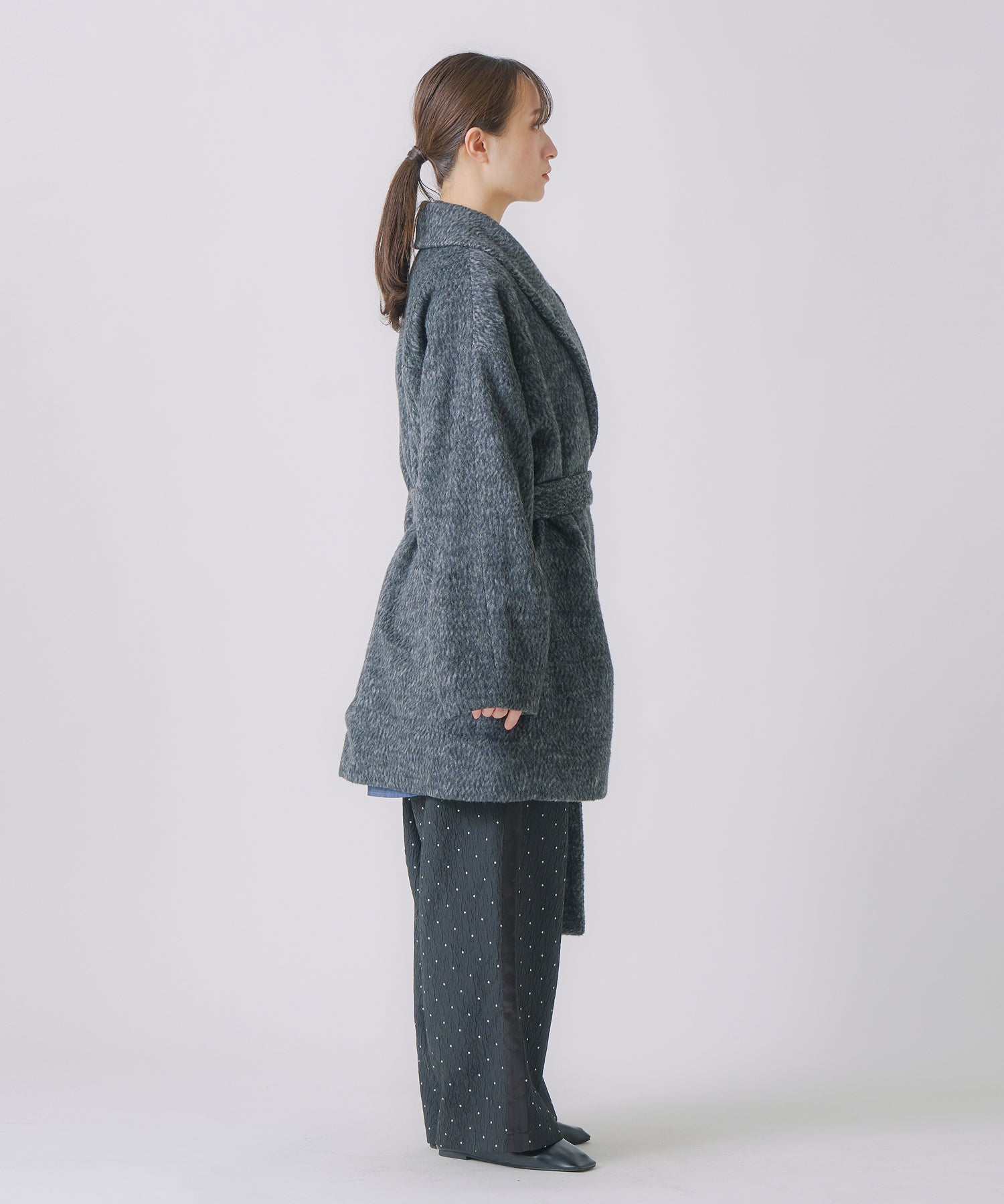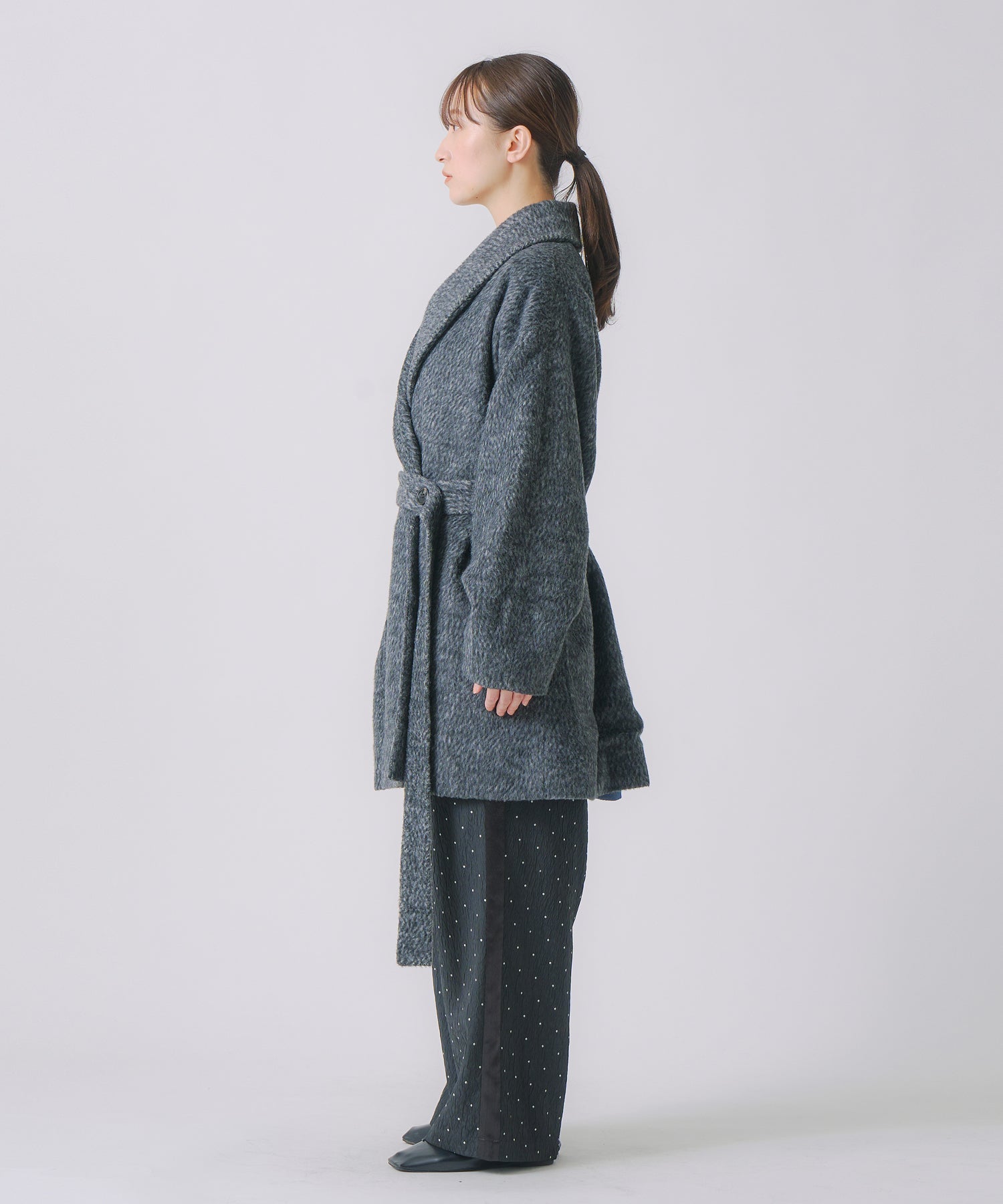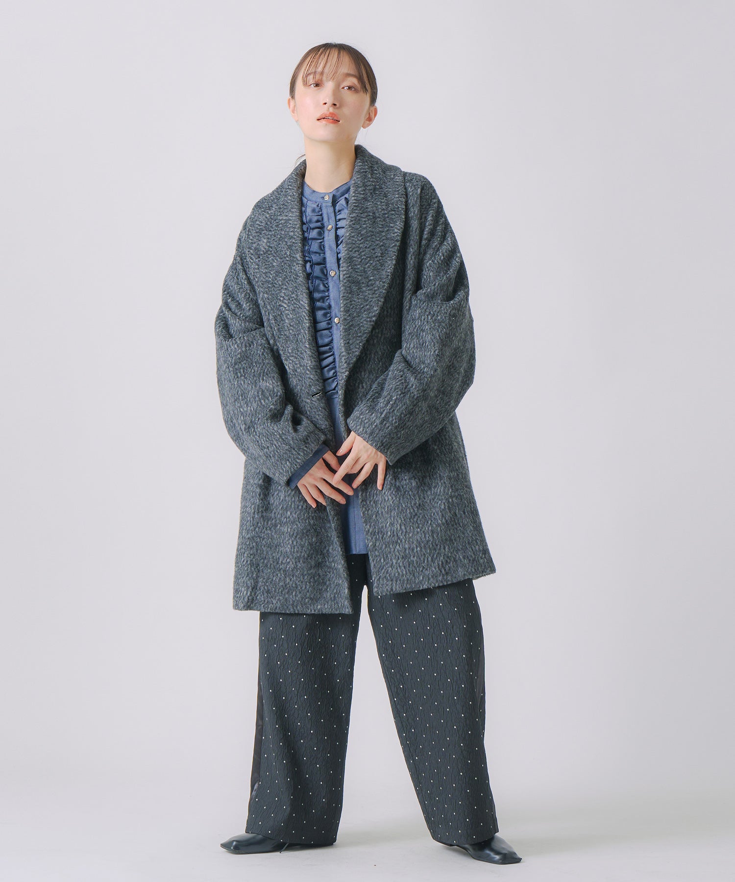 ネック周りは柔らかい曲線を描いた女性らしいショールカラーが特徴的です。