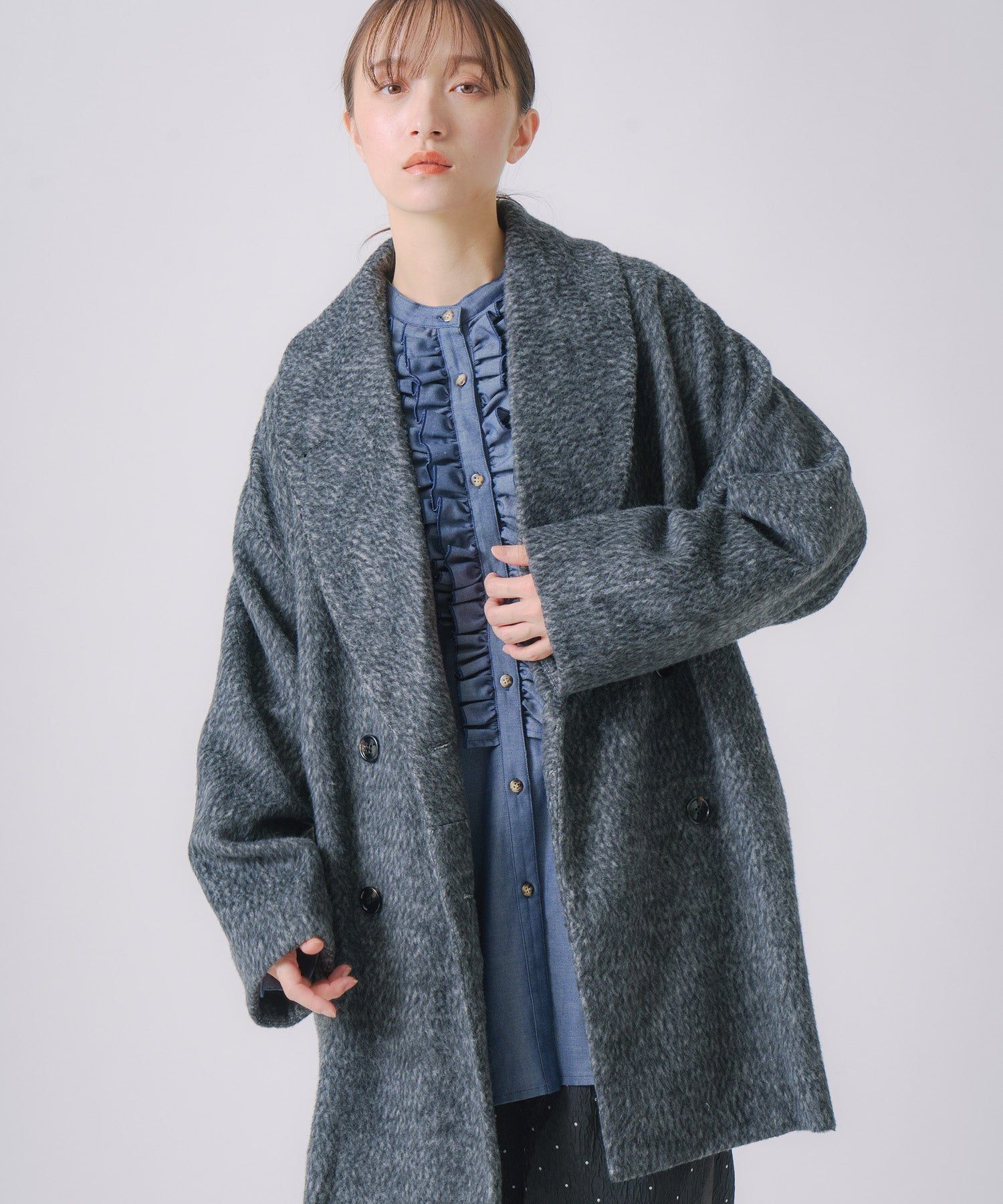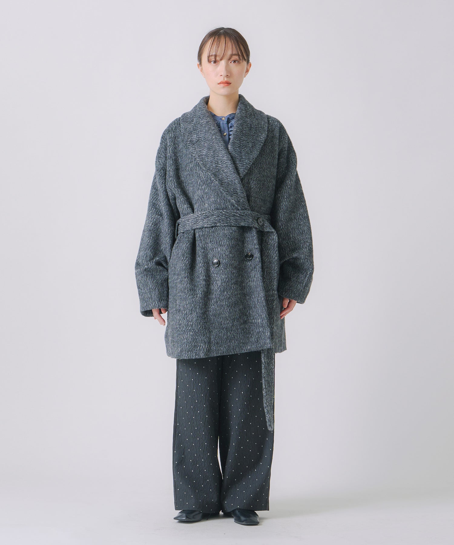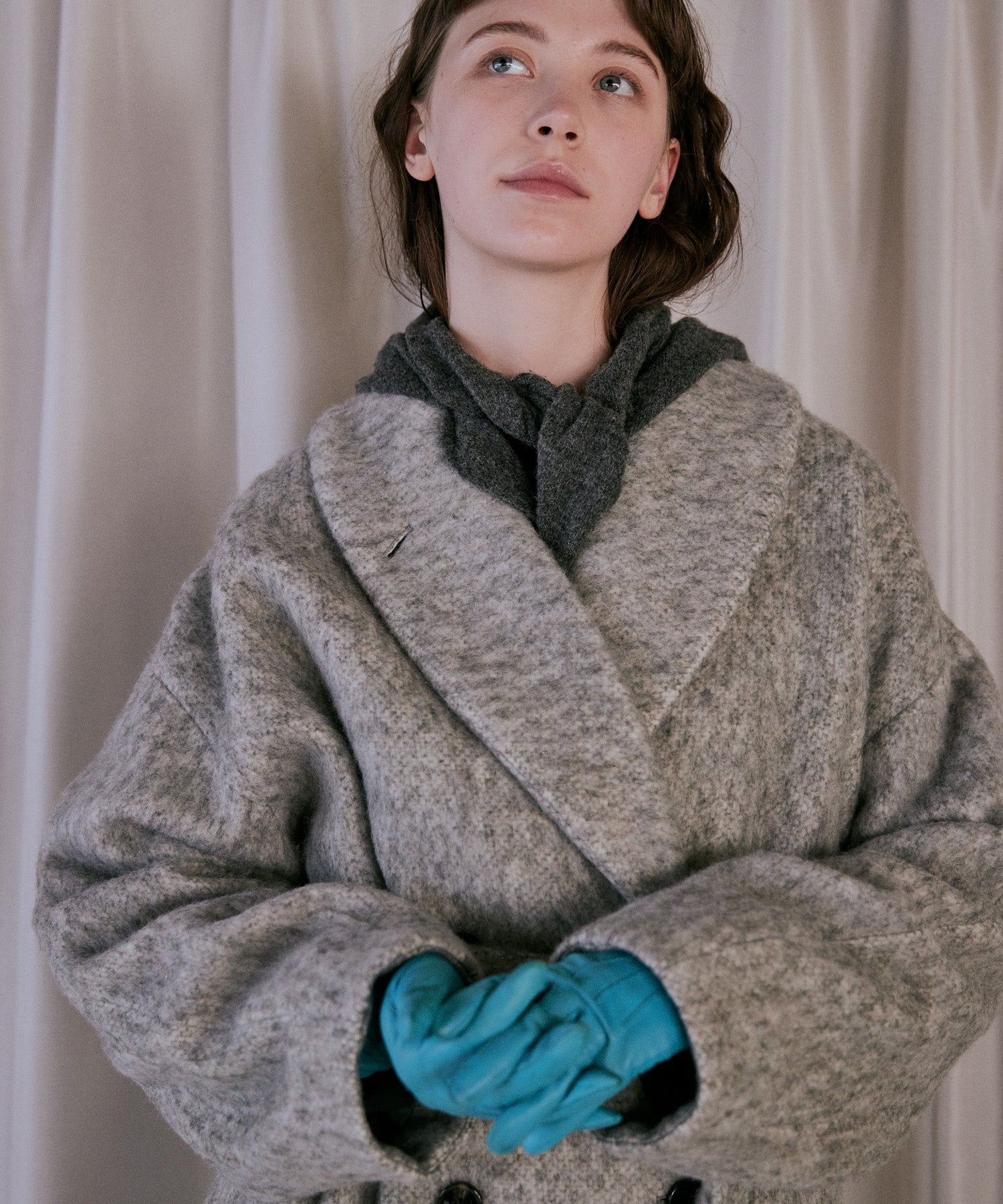 ネック周りは柔らかい曲線を描いた女性らしいショールカラーが特徴的です。