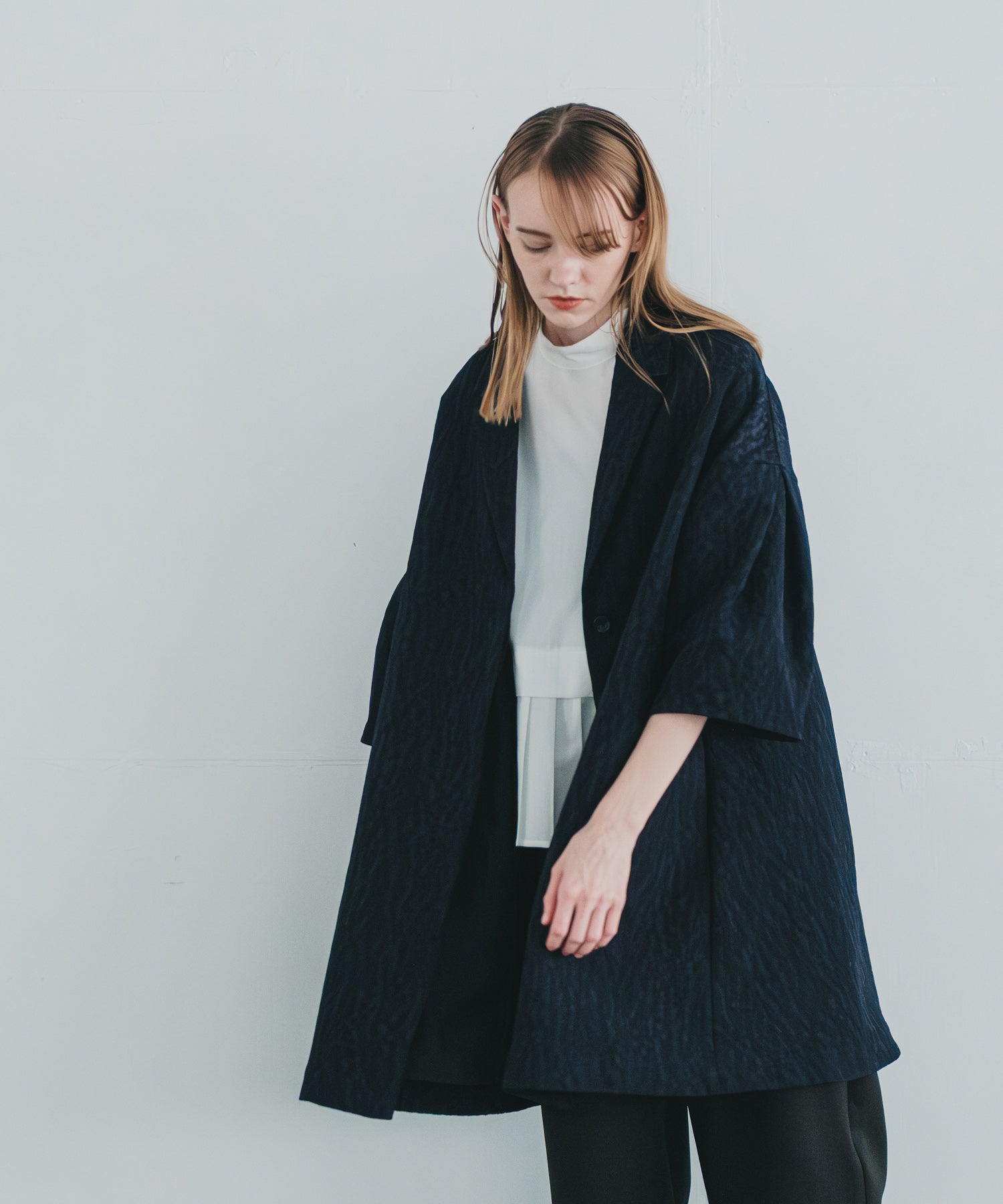 上品なジャガード織りの凹凸を活かしたフォーマルコートです。