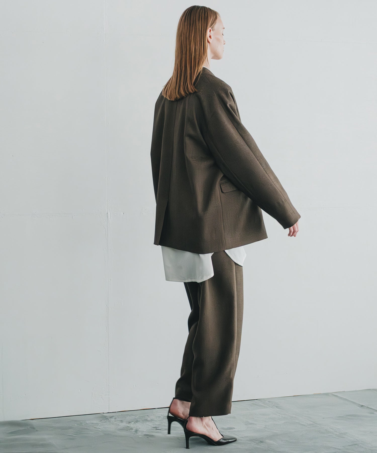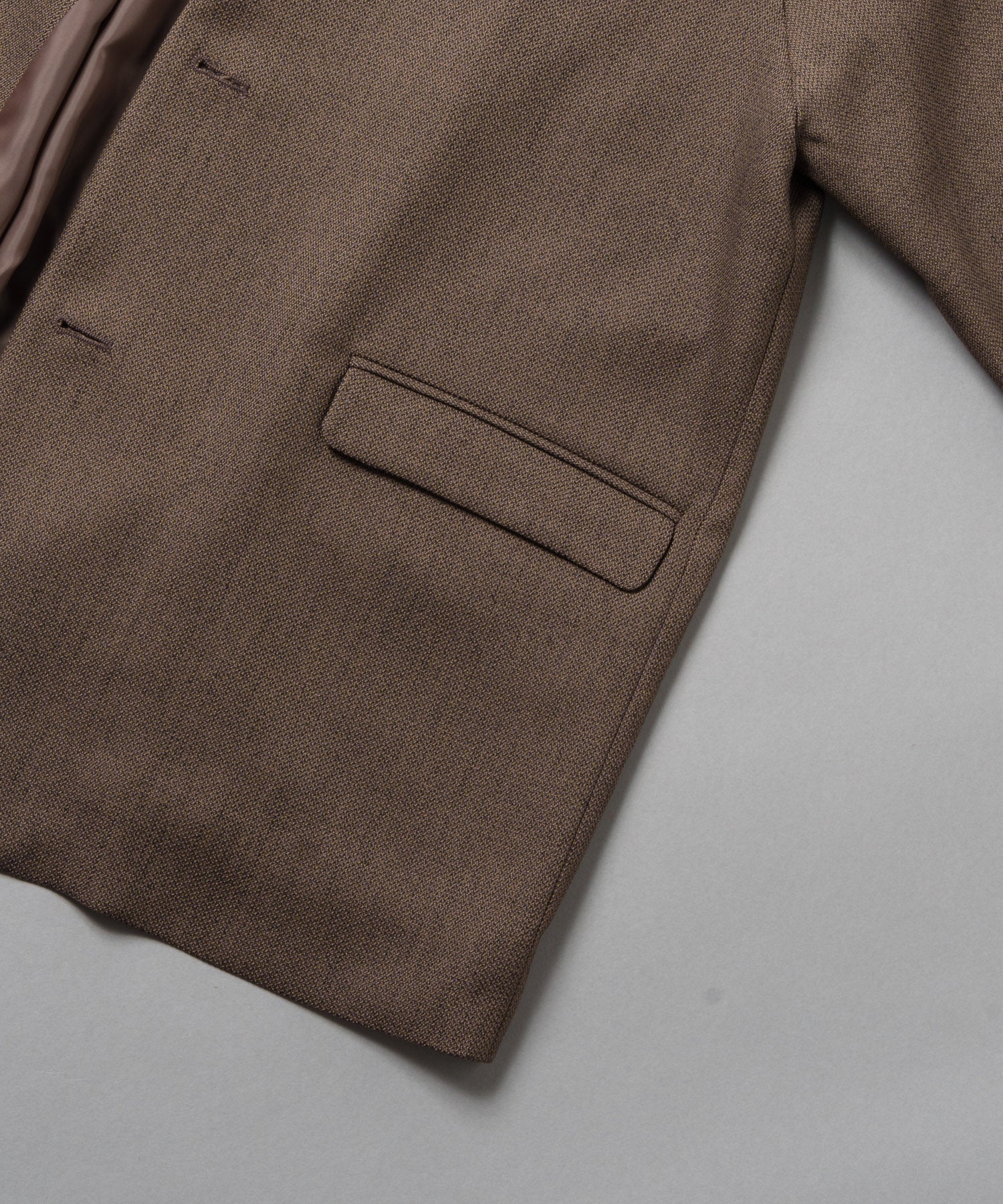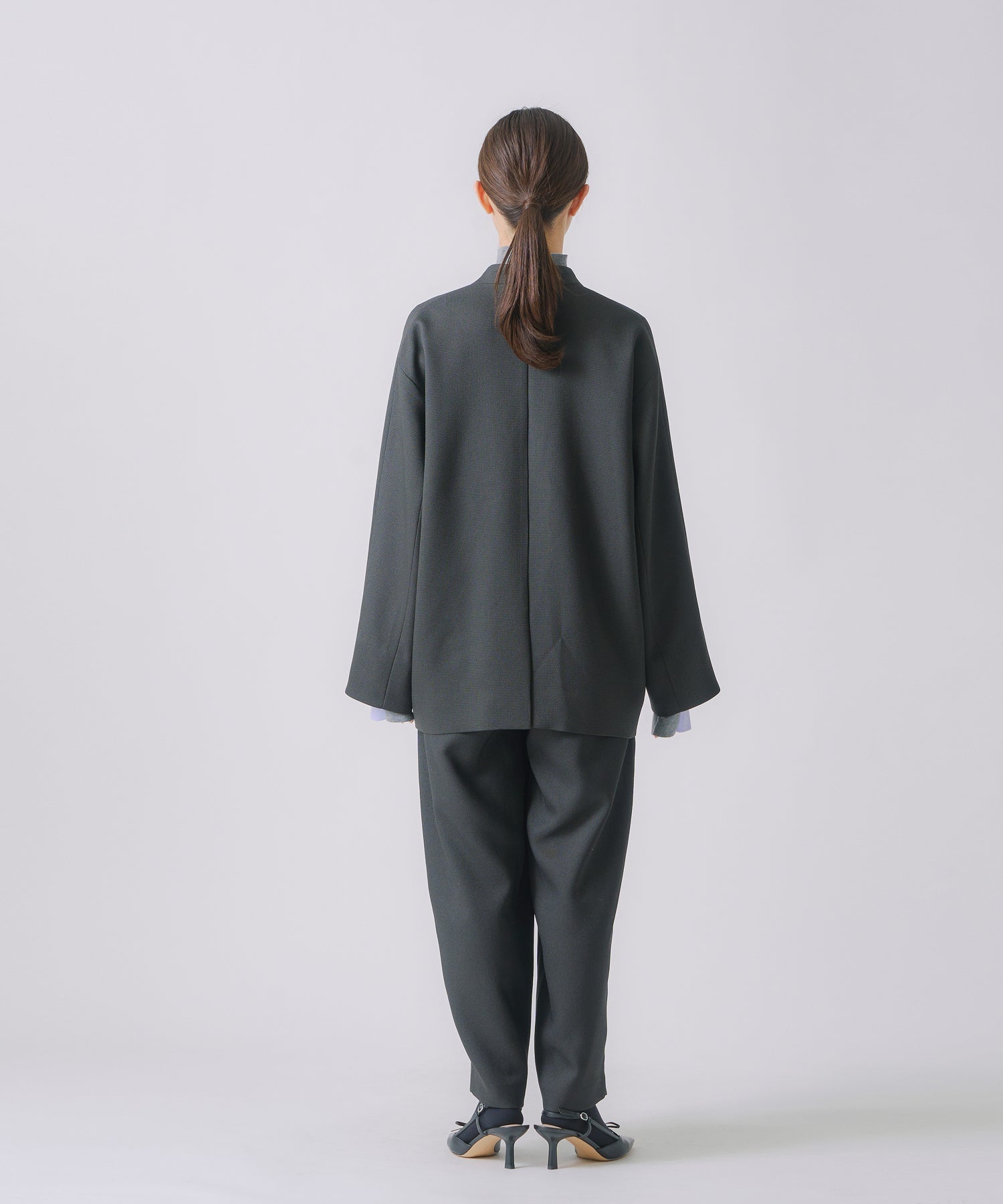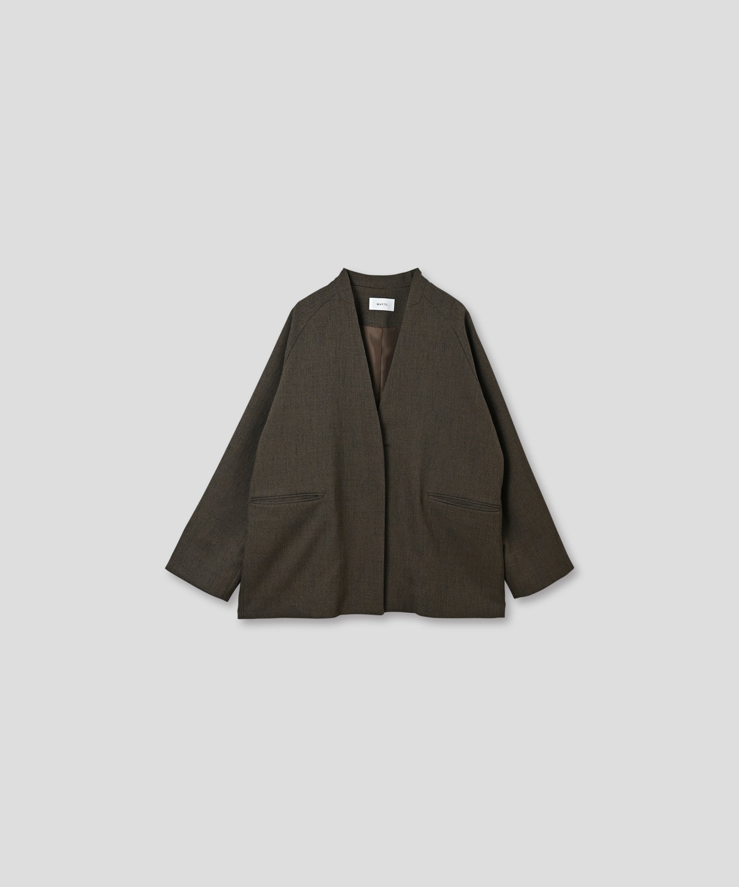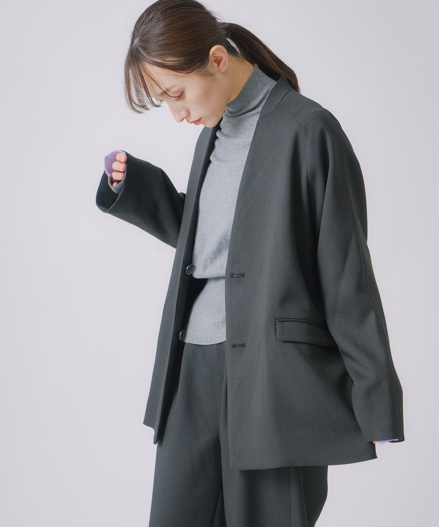 すっきりとしたスリットネックと、ハンサムライクな雰囲気が印象的なジャケットです。