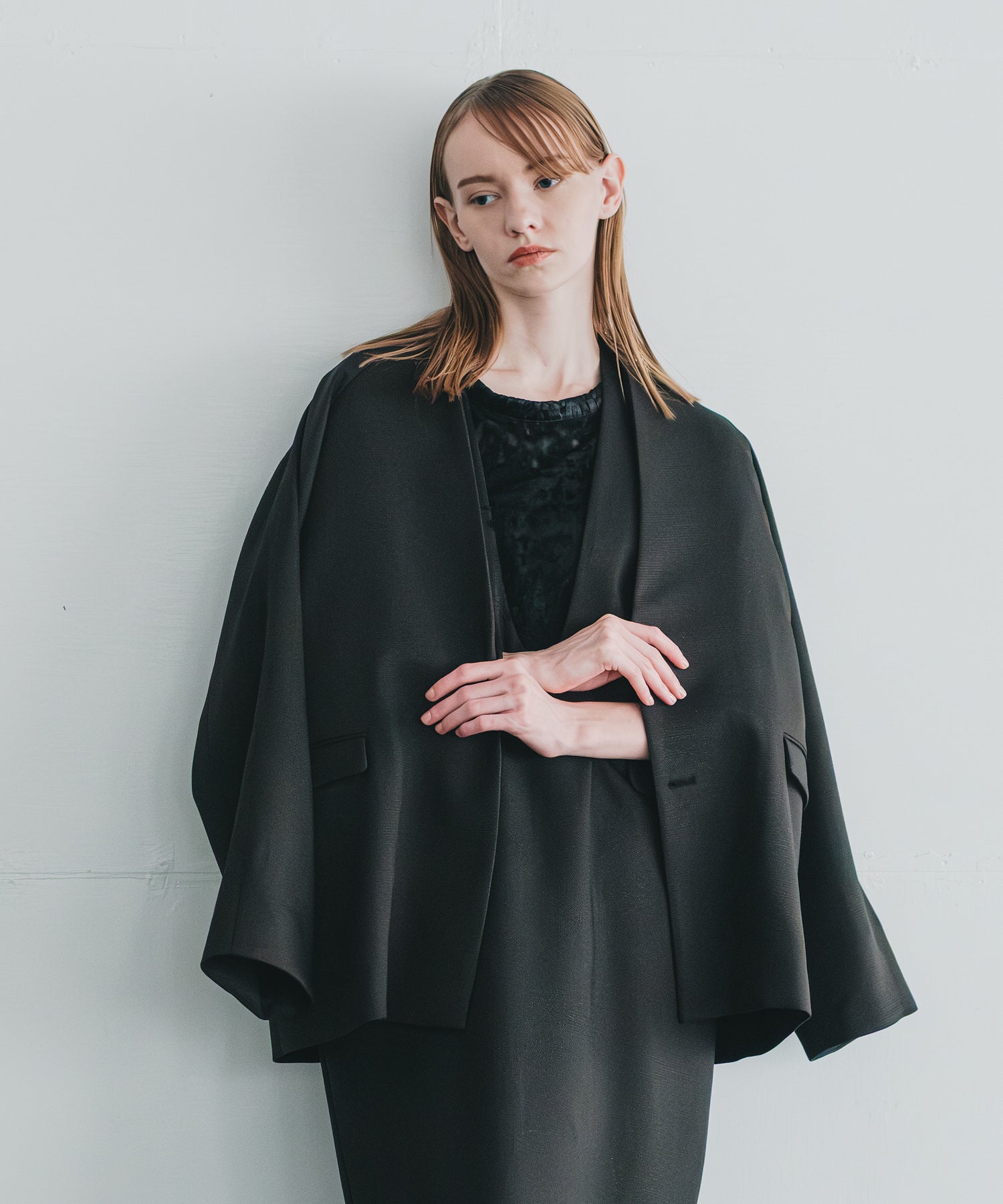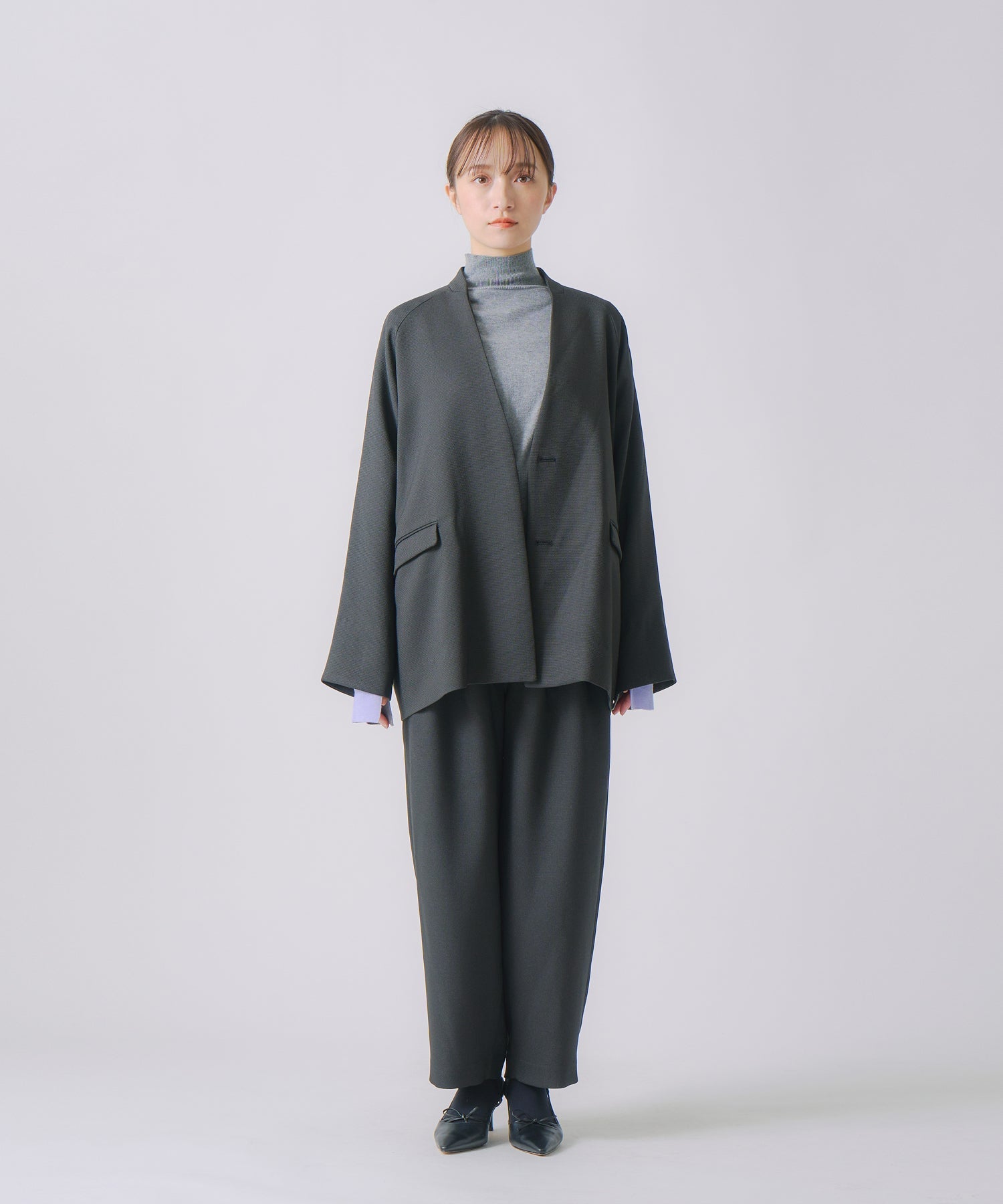 ゆったりとしたサイズ感ですが、肩のラインや切り替えのパーツラインに丸みを持たせて女性らしさをしっかり残しています。