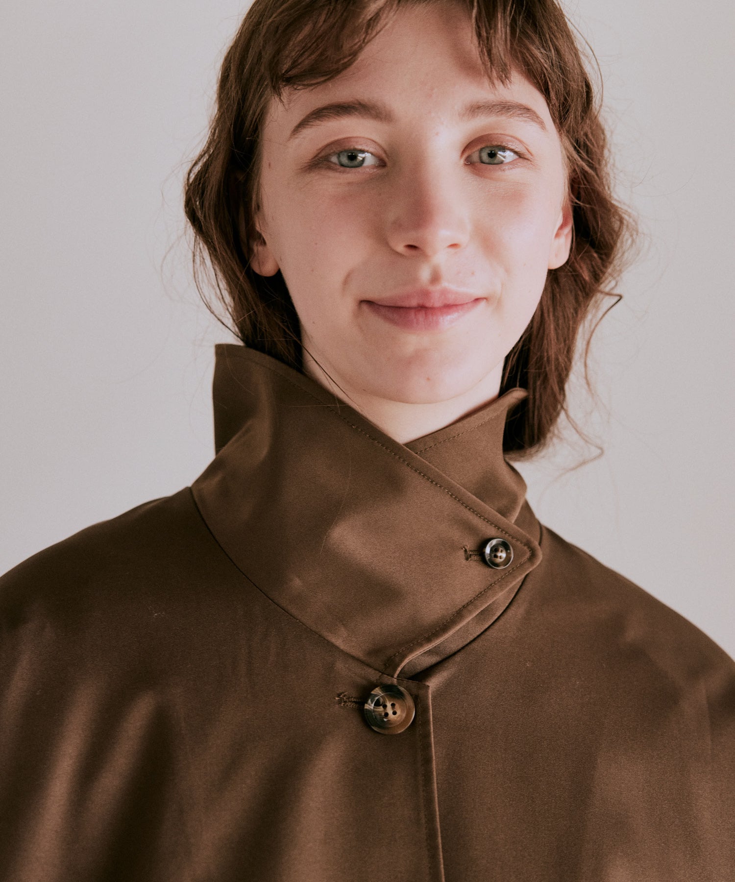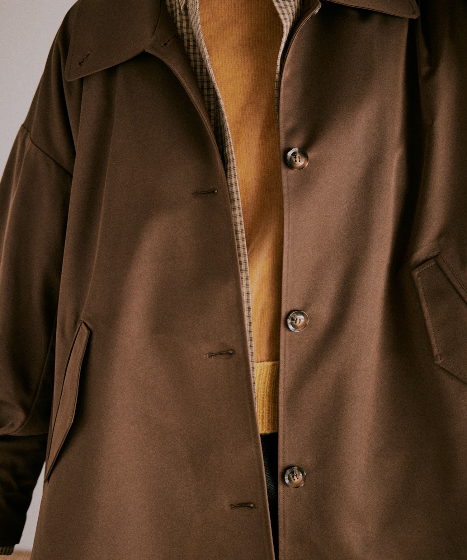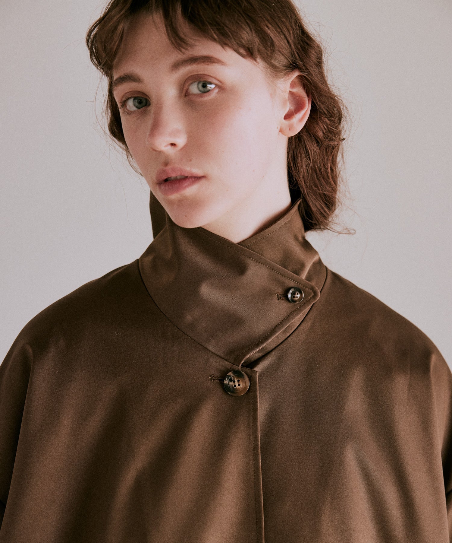襟は立ち上げてボタンで留めることができ、雰囲気の違いを楽しんでいただけます。