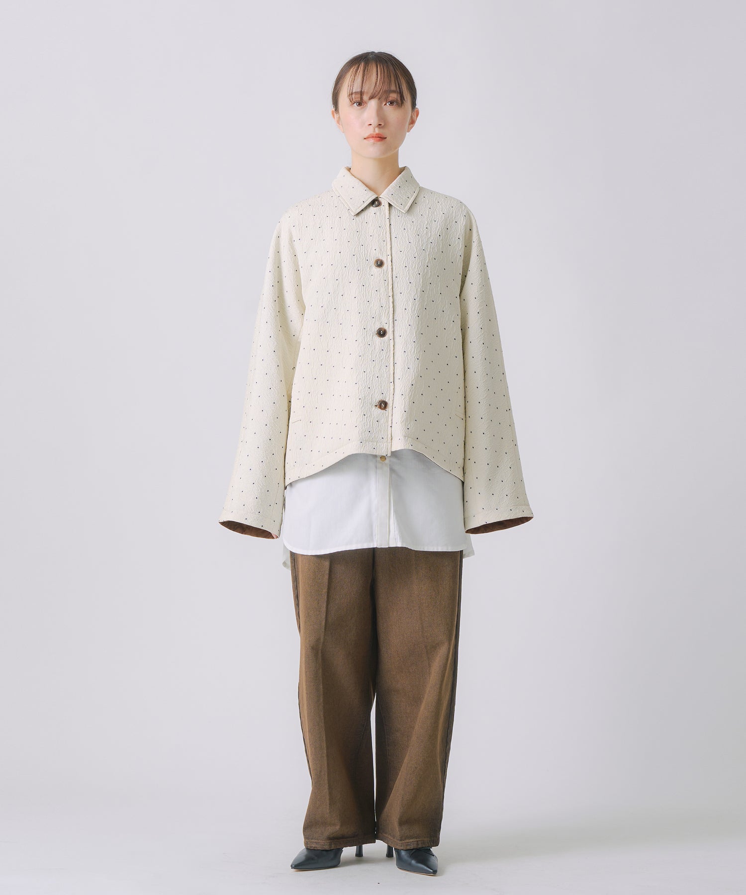 ドット柄はジャガード生地になっており、凹凸のある表面感が上品で存在感のある素材です。
