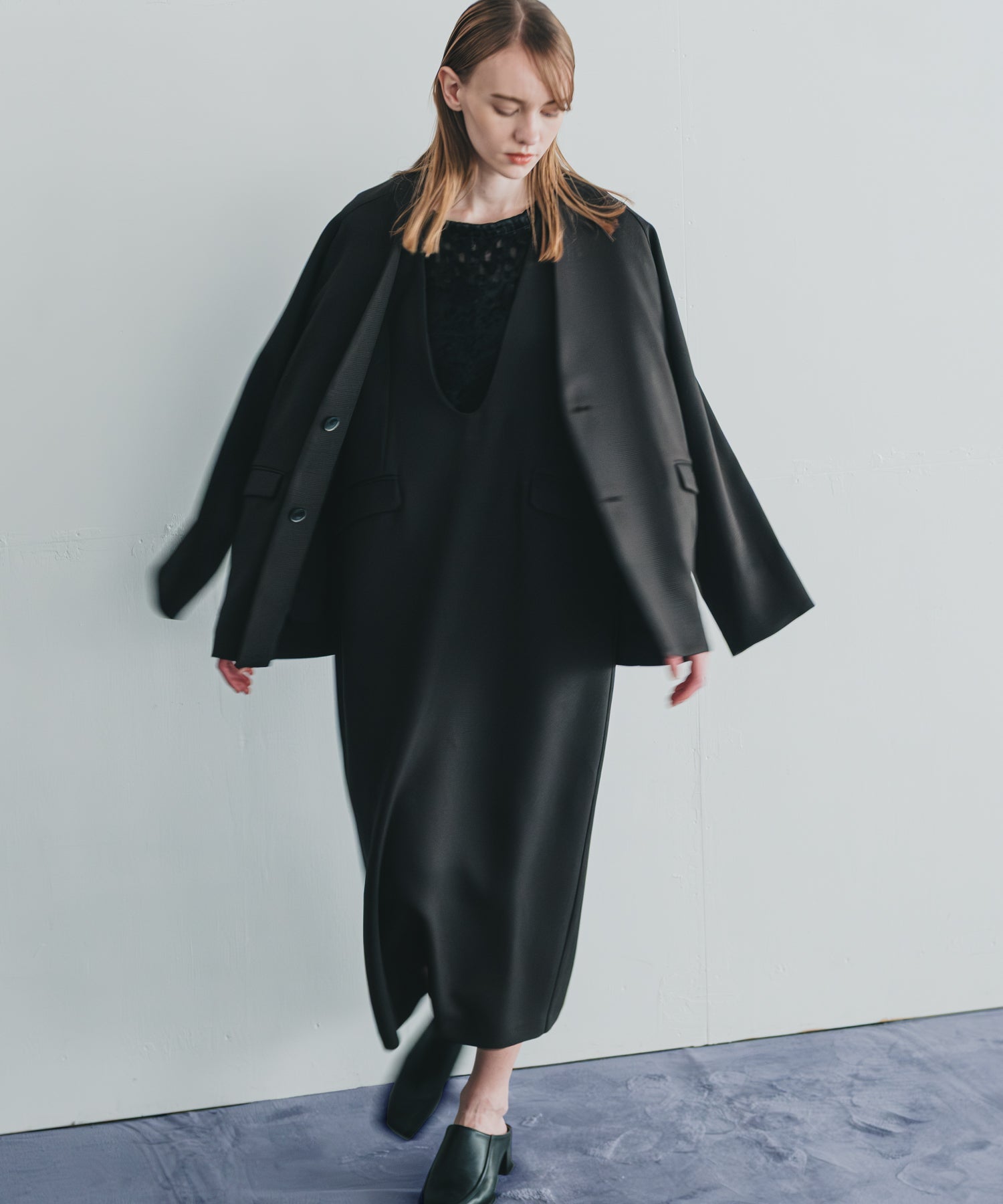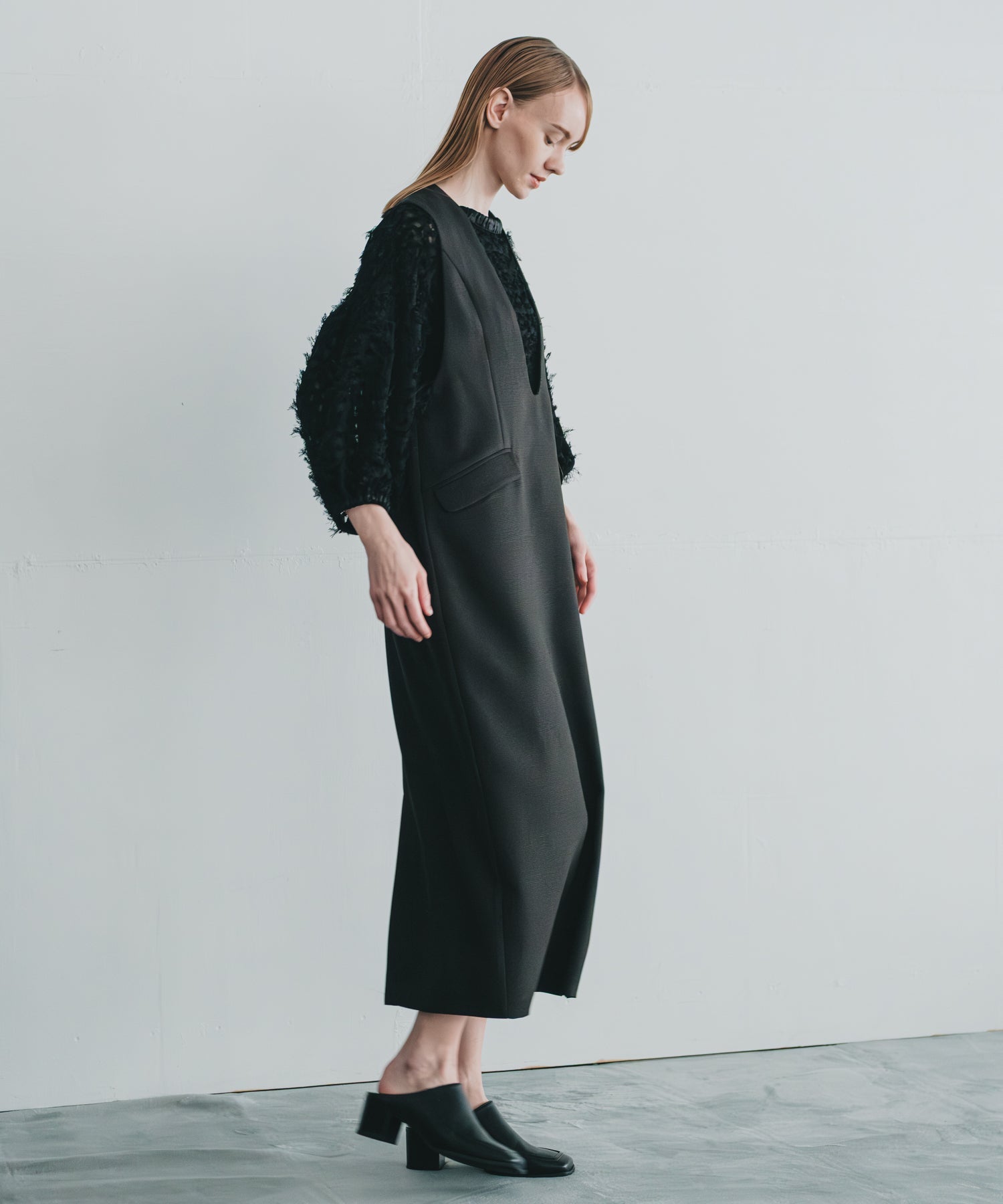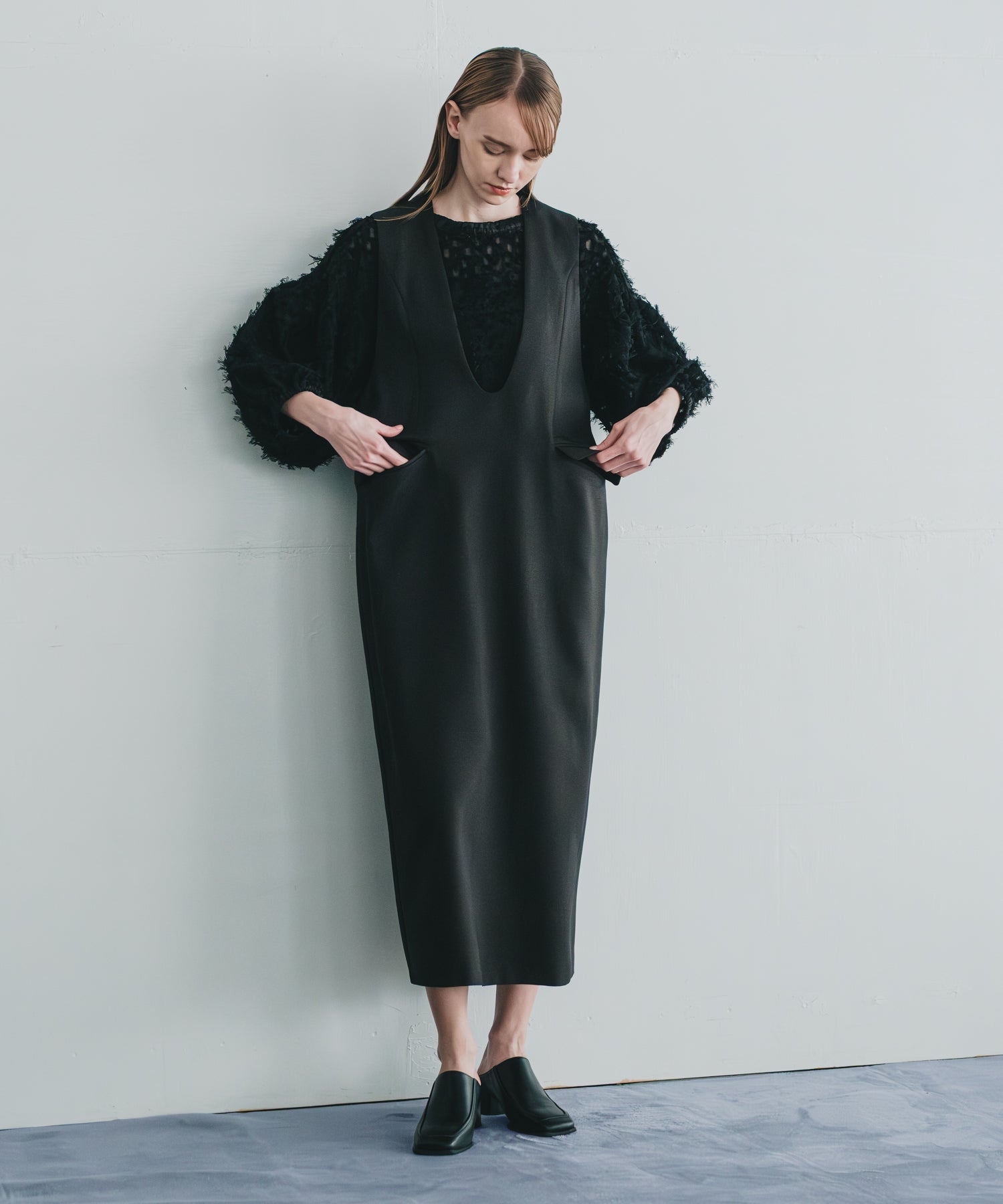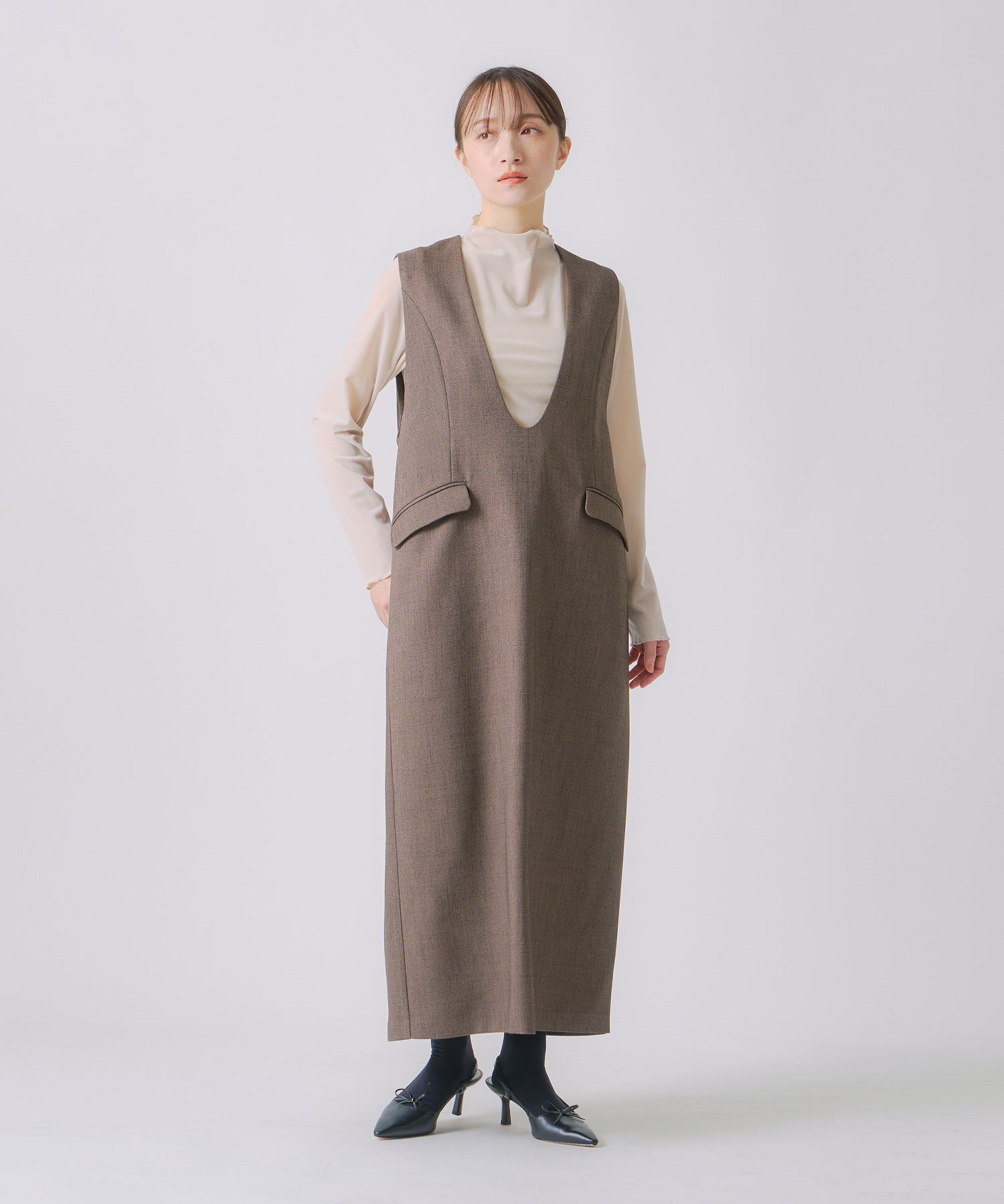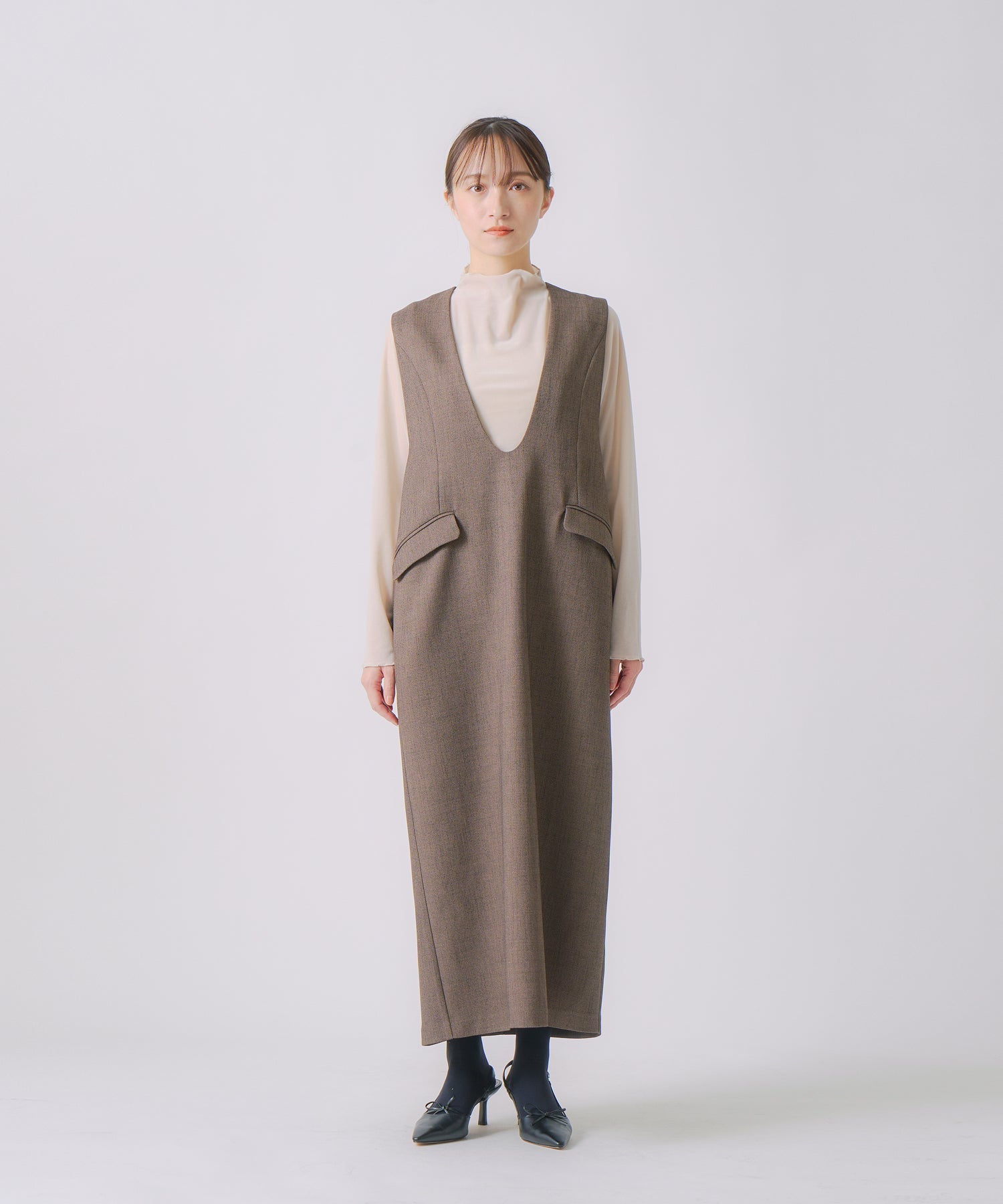 Uネックのラインに丸みを持たせて、滑らかで女性らしいネックラインに仕上げました。