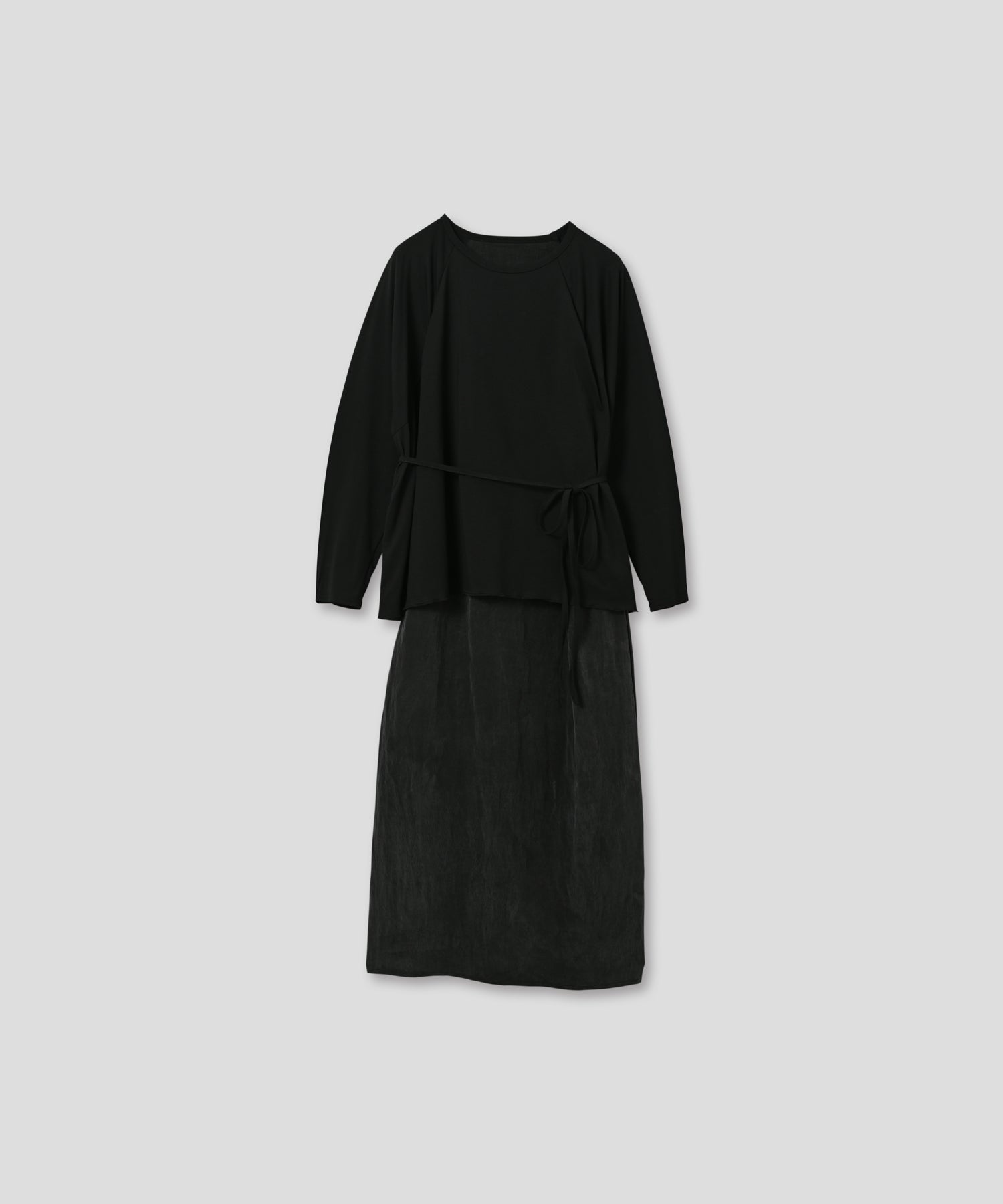 トップスとボトムスをスタイリングしているように見えるデザインワンピースです。