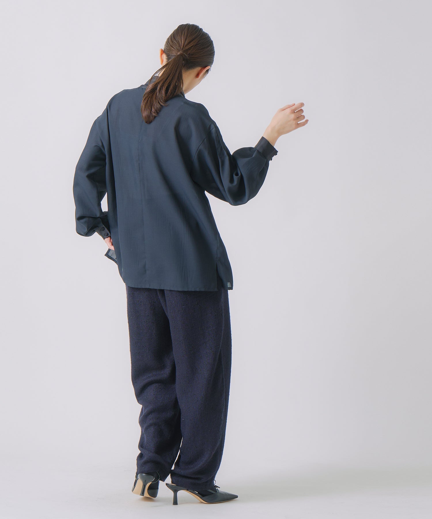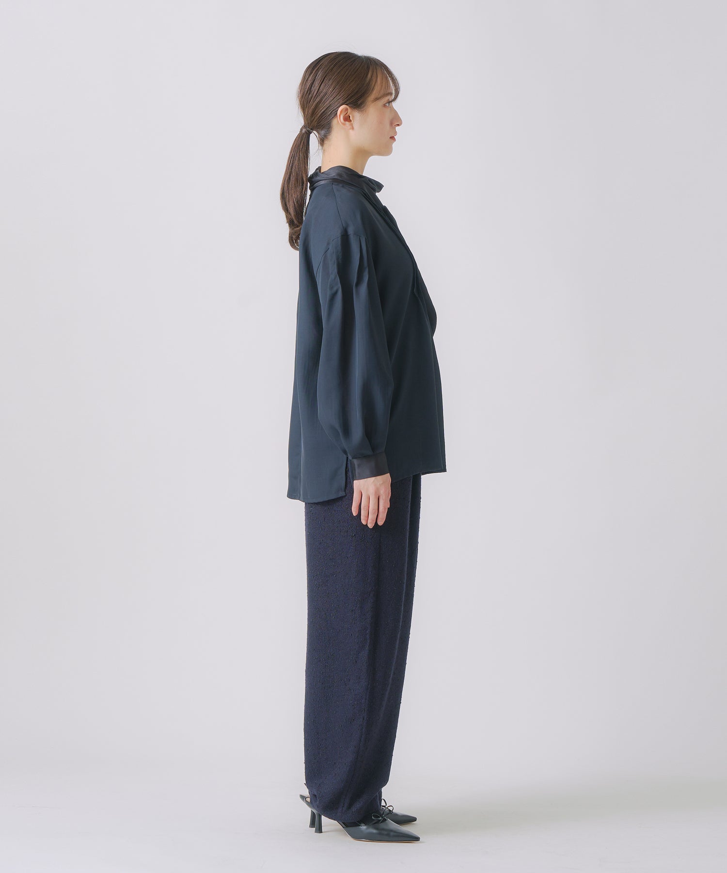 ゆったりと、裾で少しクッションする丈感がメンズライクでおしゃれな印象です。