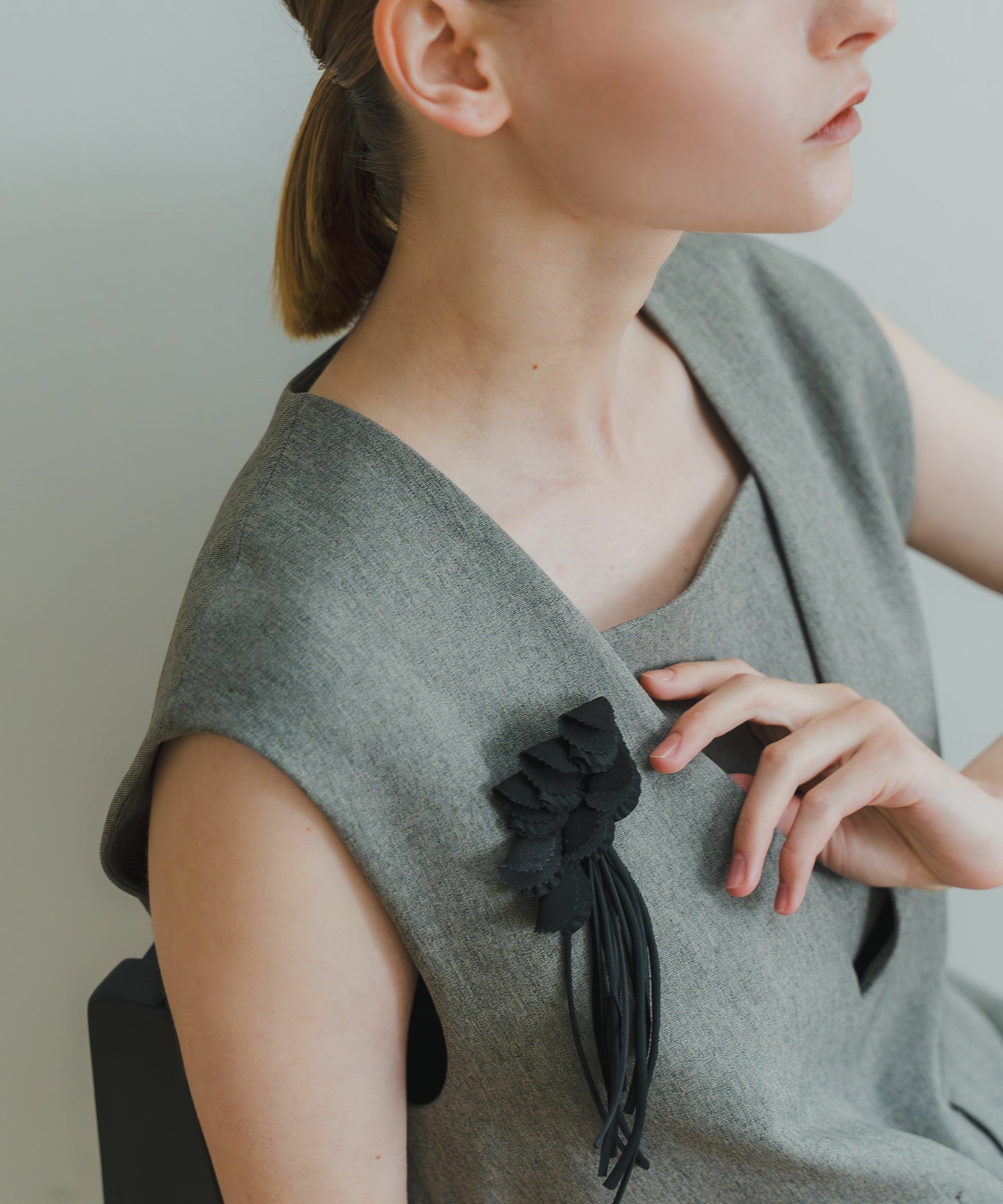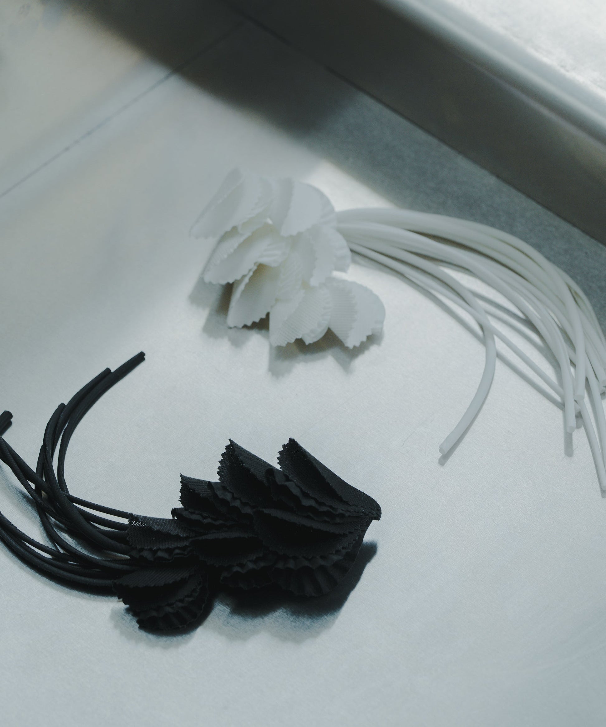パーツ1枚ごとにプリーツ加工や、素材の特性を活かしながら、変化を持たせています。