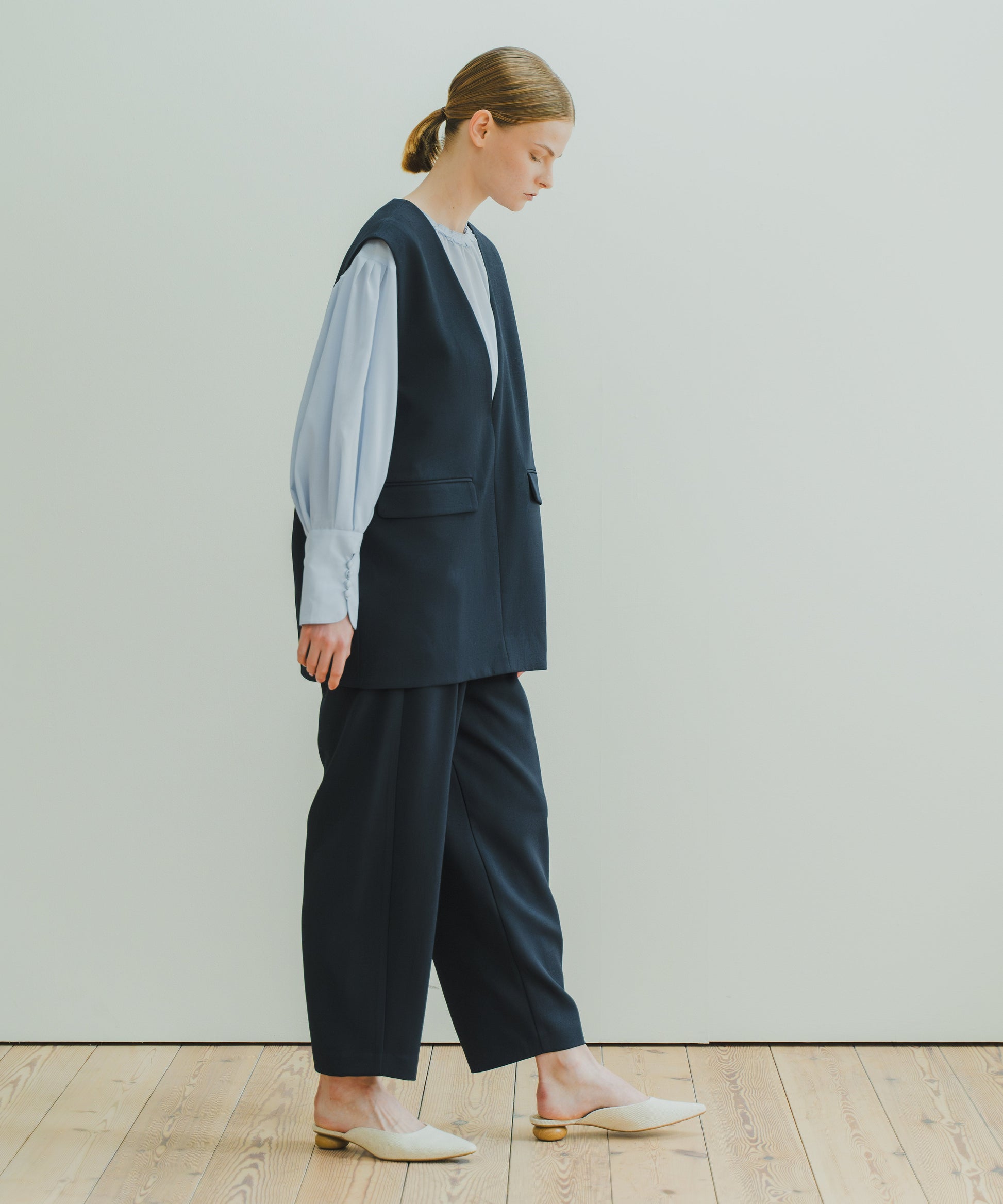 SLIT NECK COCOON VEST / WHT25HBL4061