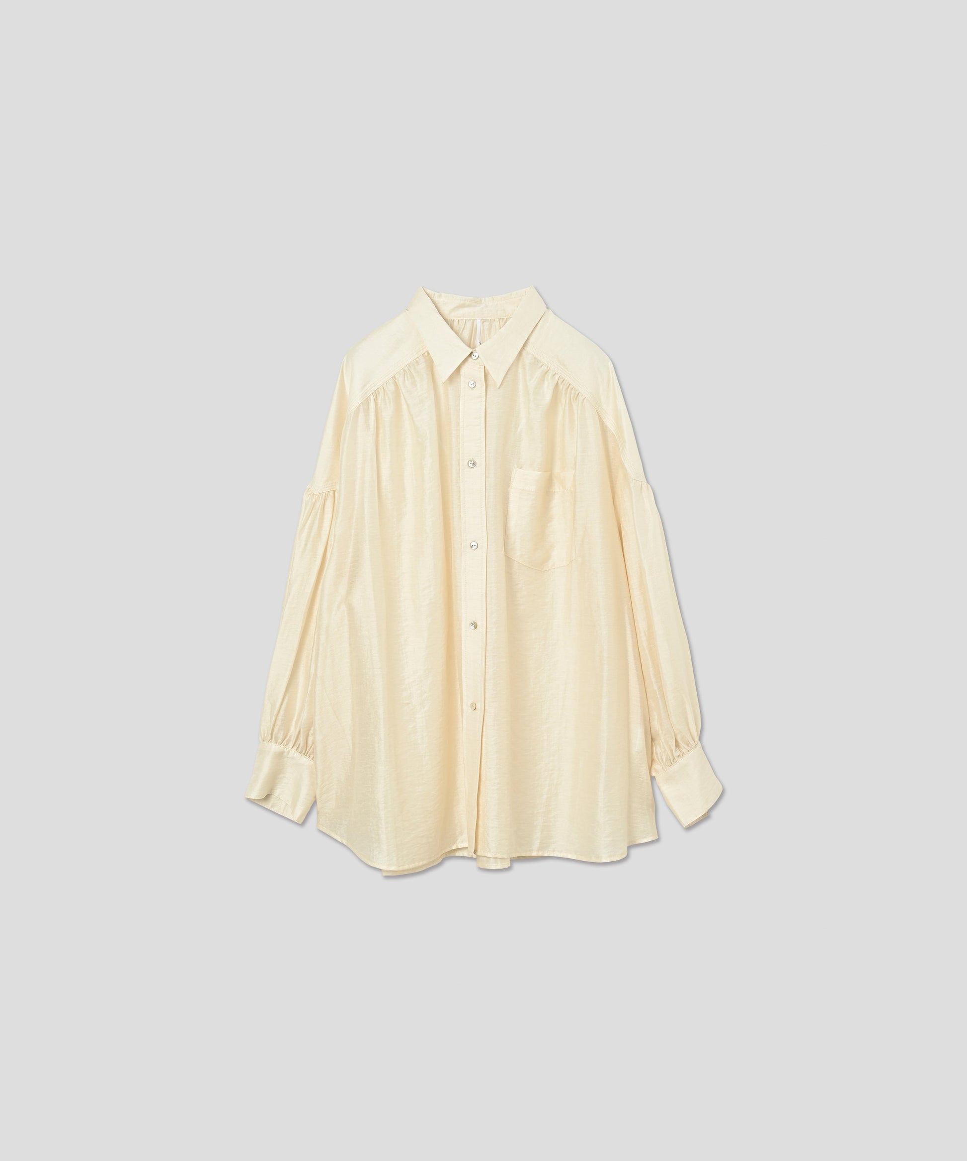 肩のデザインヨークから、タックギャザーでたっぷりとボリュームを持たせた袖が特徴的。