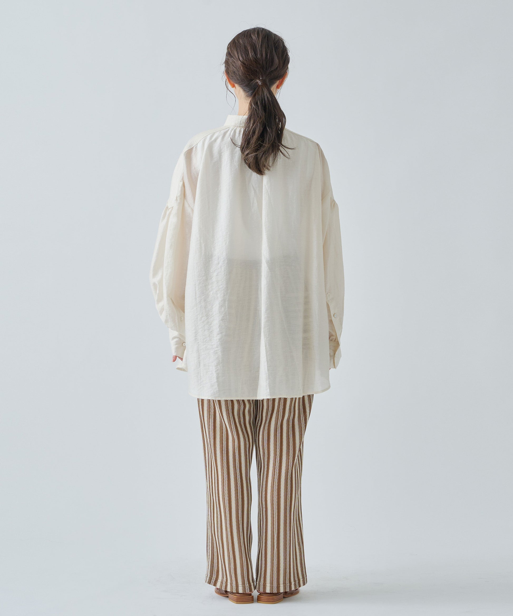 大きめなシルエットですが、シアー感があるのでフワッとしたエアリーな雰囲気が涼しげです。