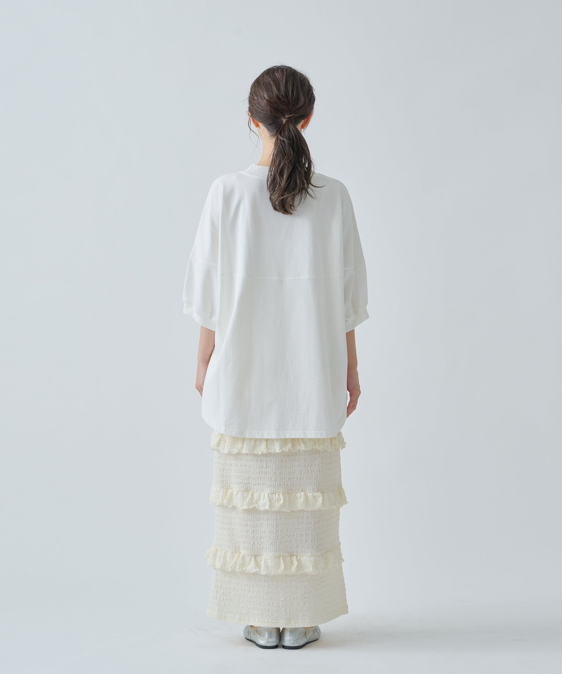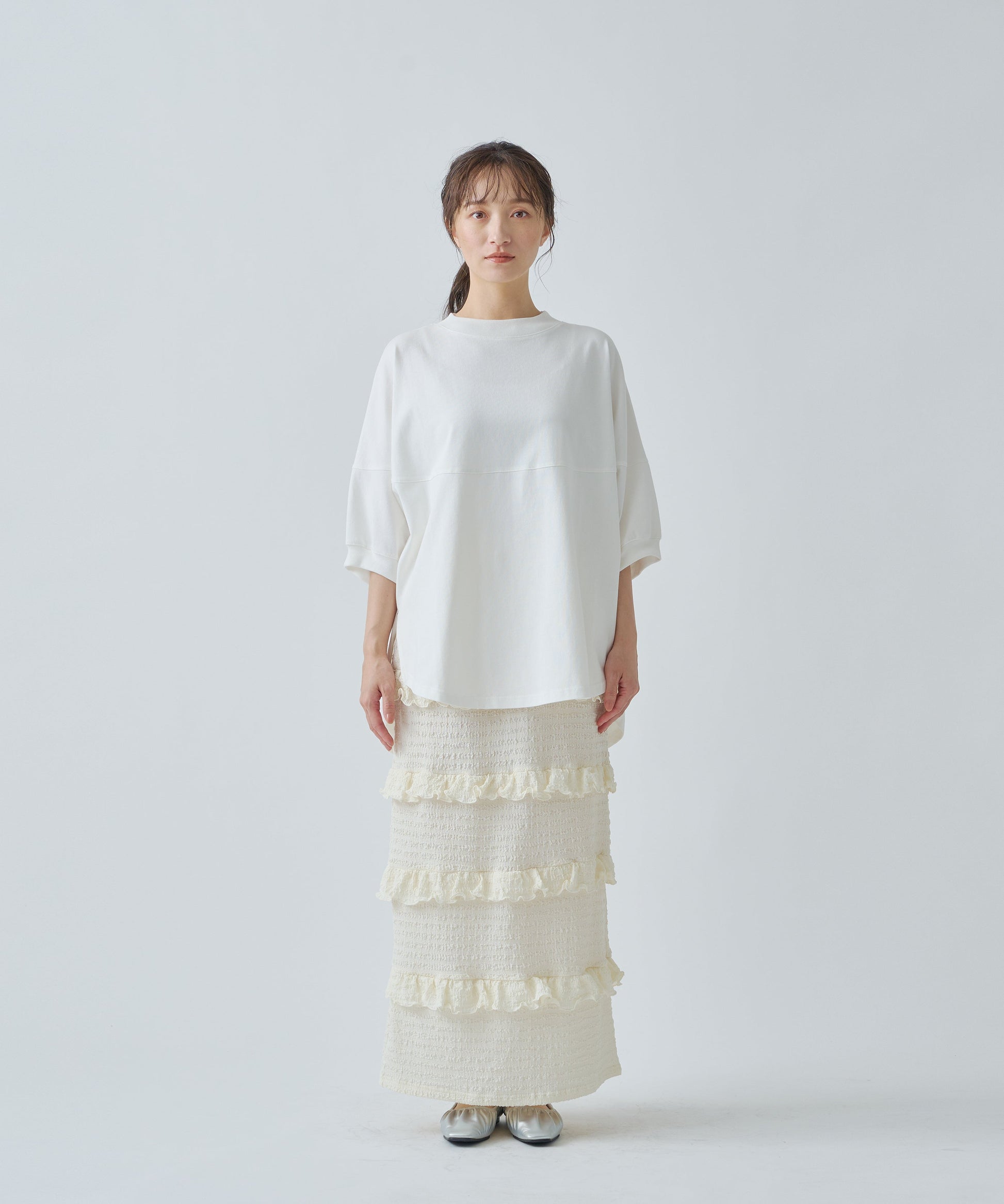 前後差をつけた着丈は、ヒップが隠れる安心な丈感です
