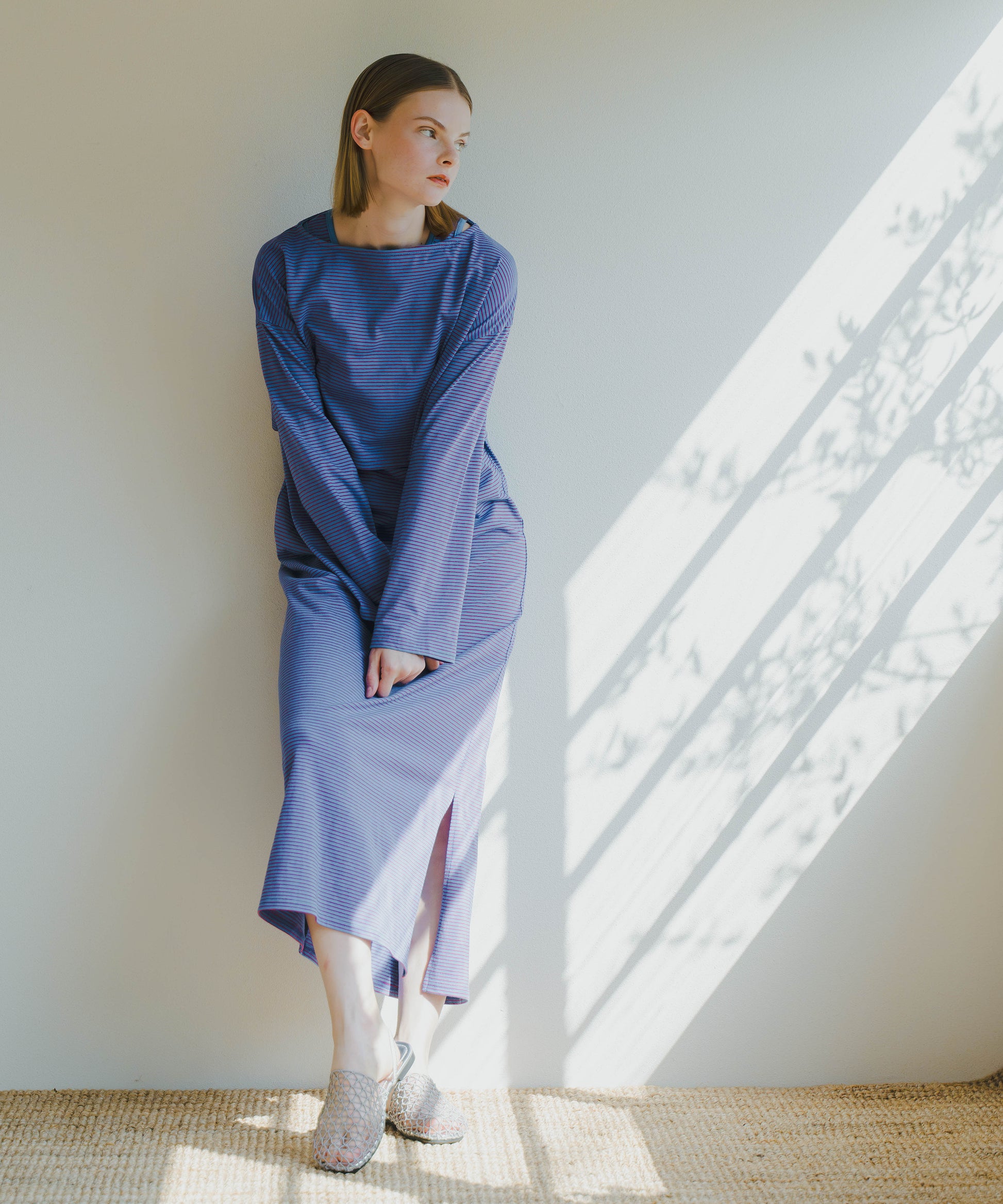 細めのピッチと、色味で遊んだボーダーカットソー生地です。