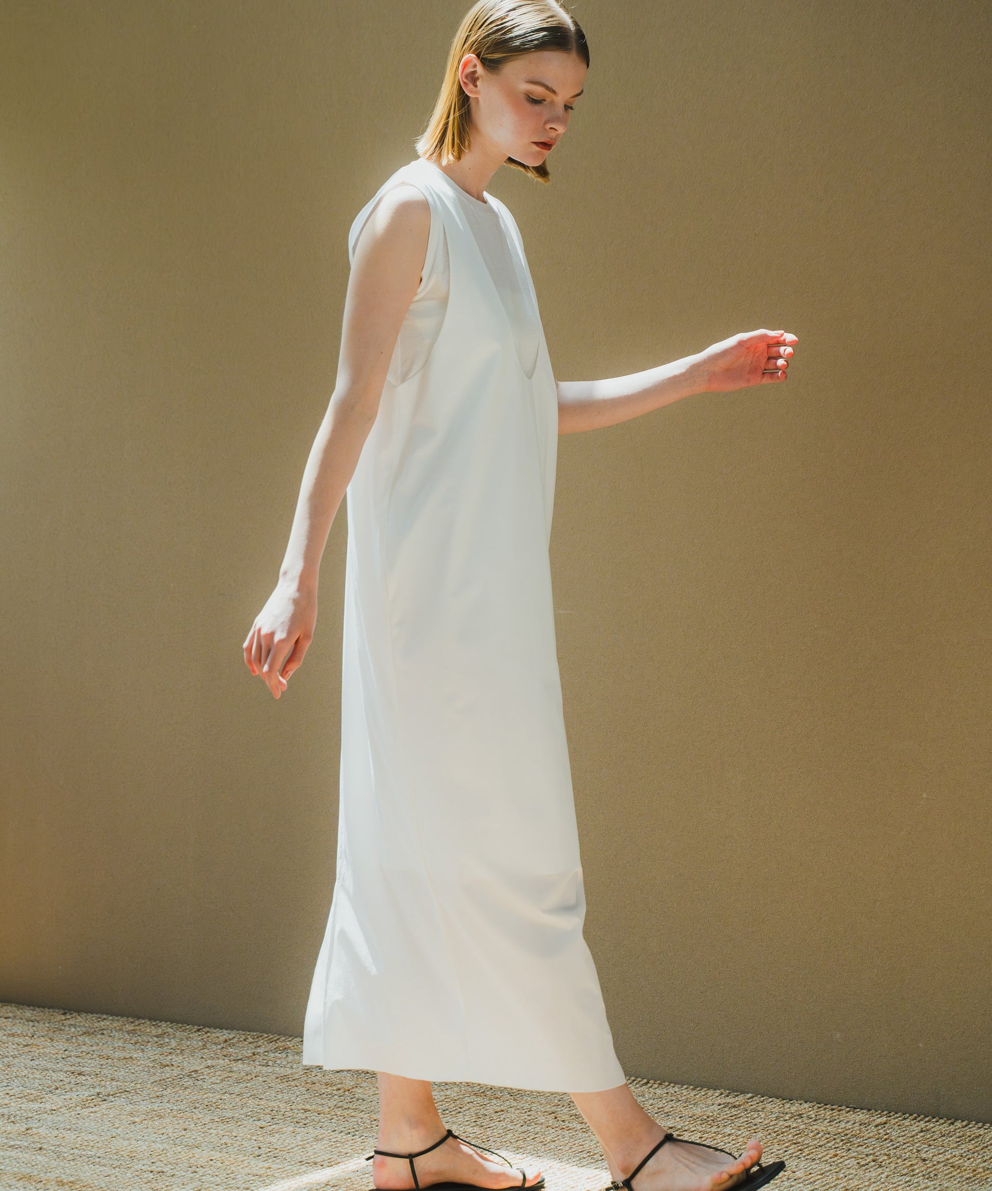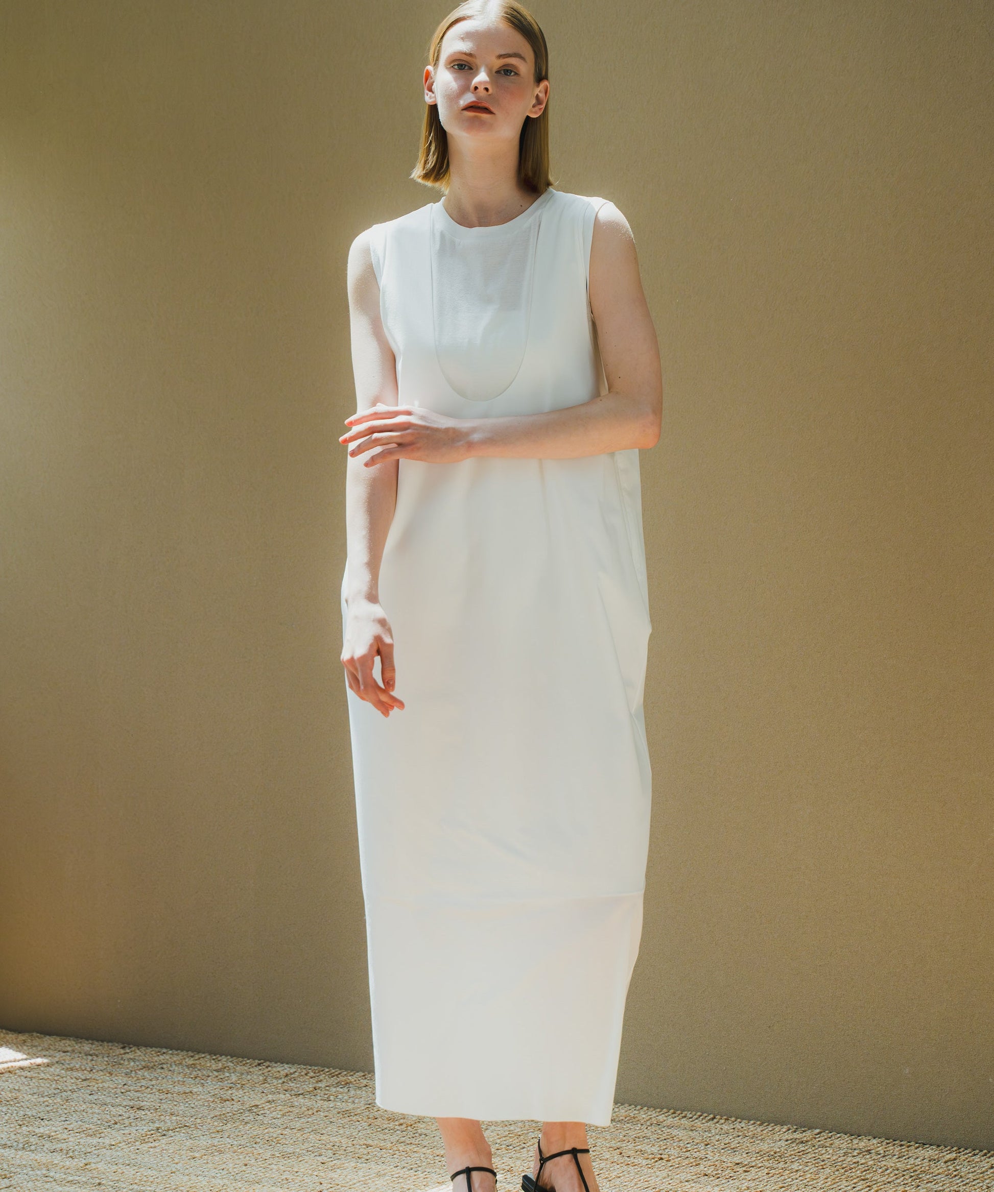 すっぽりと楽に着られ、コクーンのフォルムが印象的なドレスです。