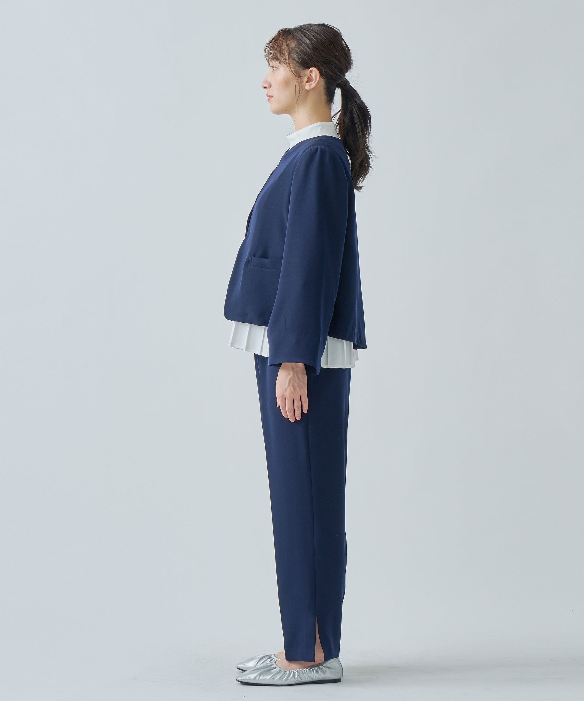 程よい厚みながらも、ドレープや素材の滑らかさが感じられる素材です。