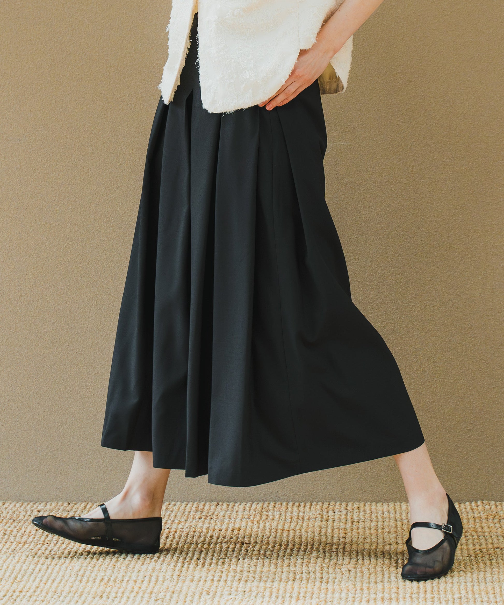 全体的に、大きめのプリーツを施してAラインに仕上げたパンツです。